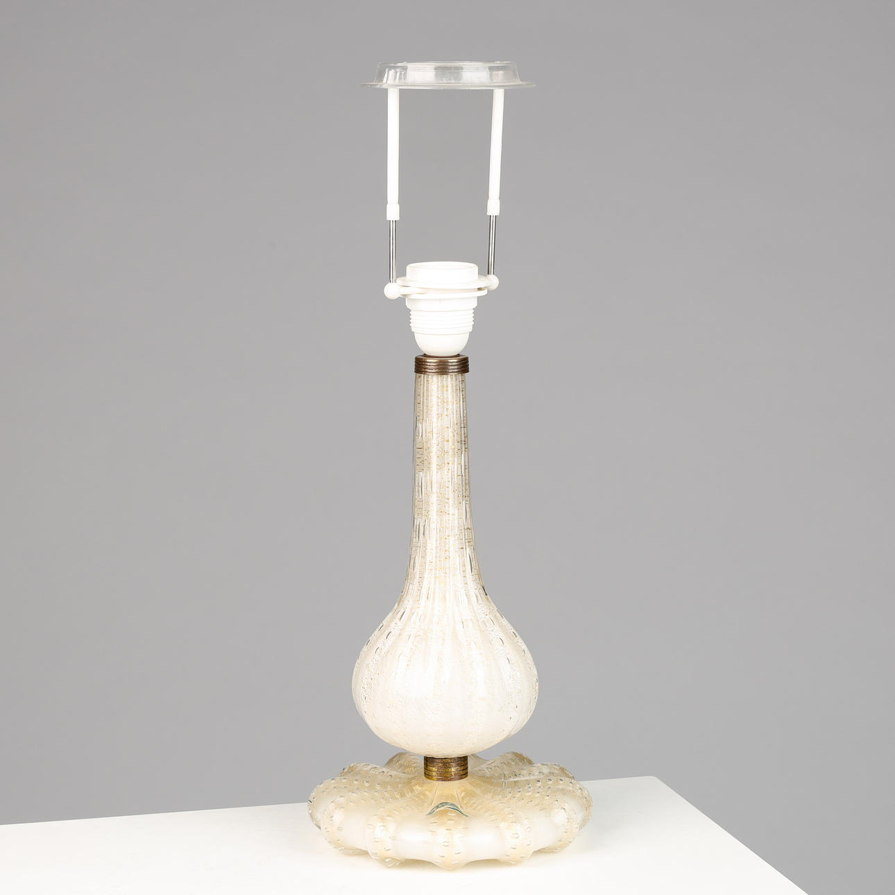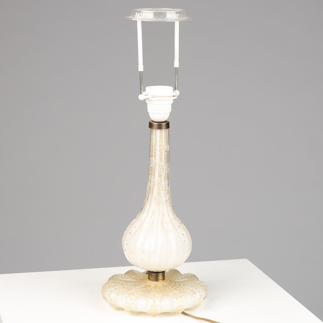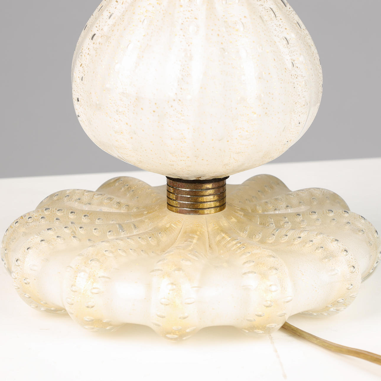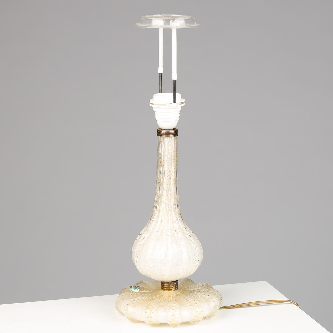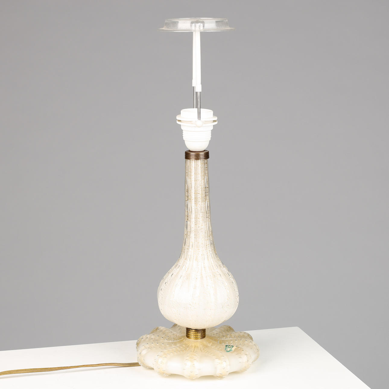 Murano, Venini glass table lamp, 'bullicante' technique with gold dust, brass details, label from Venini, mid 1900's. H. 31 cm, with screen 52 cm.