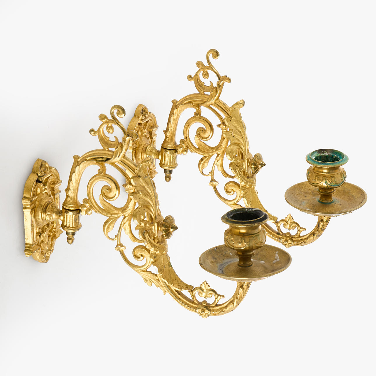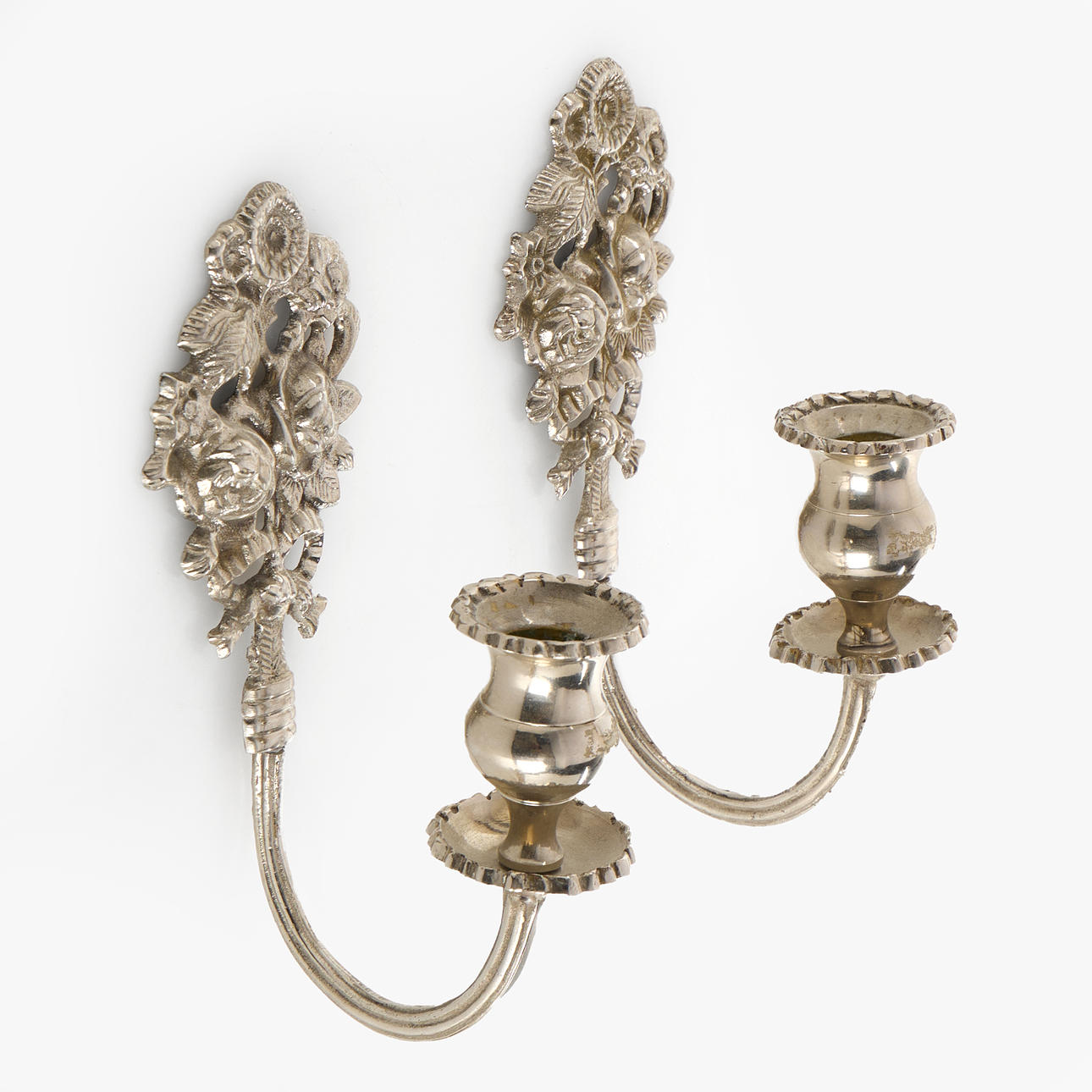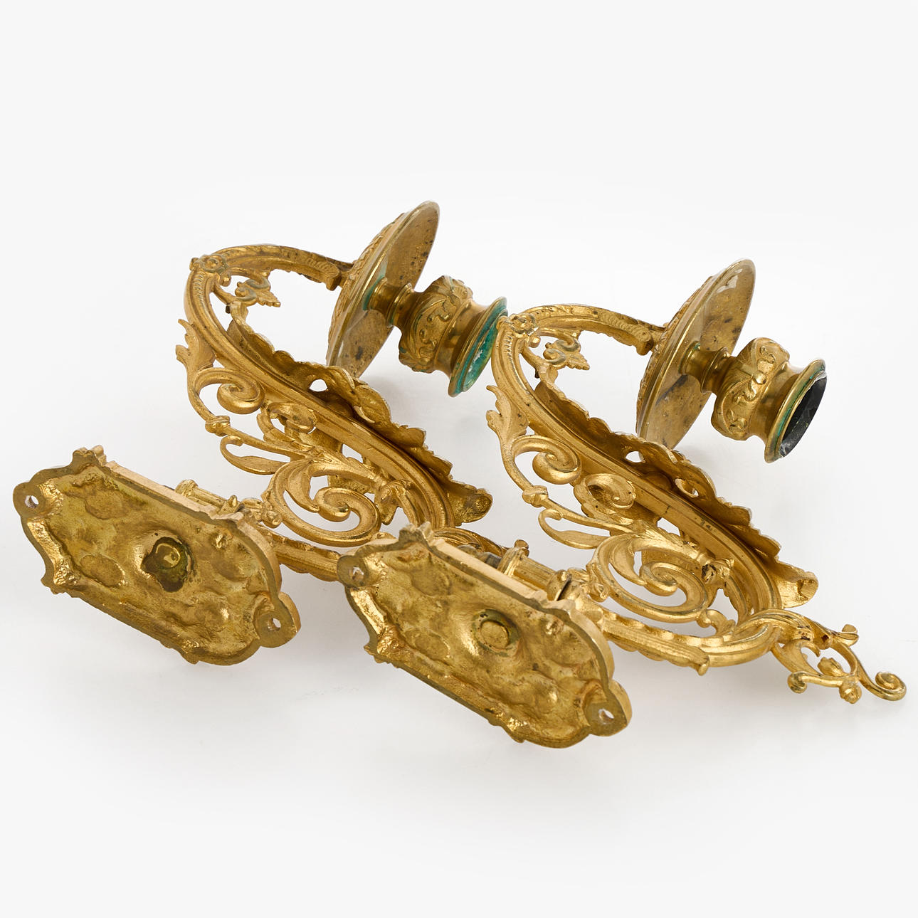 4674755. CANDLESTICKS, 2 pairs, gilt or nickel-plated brass.