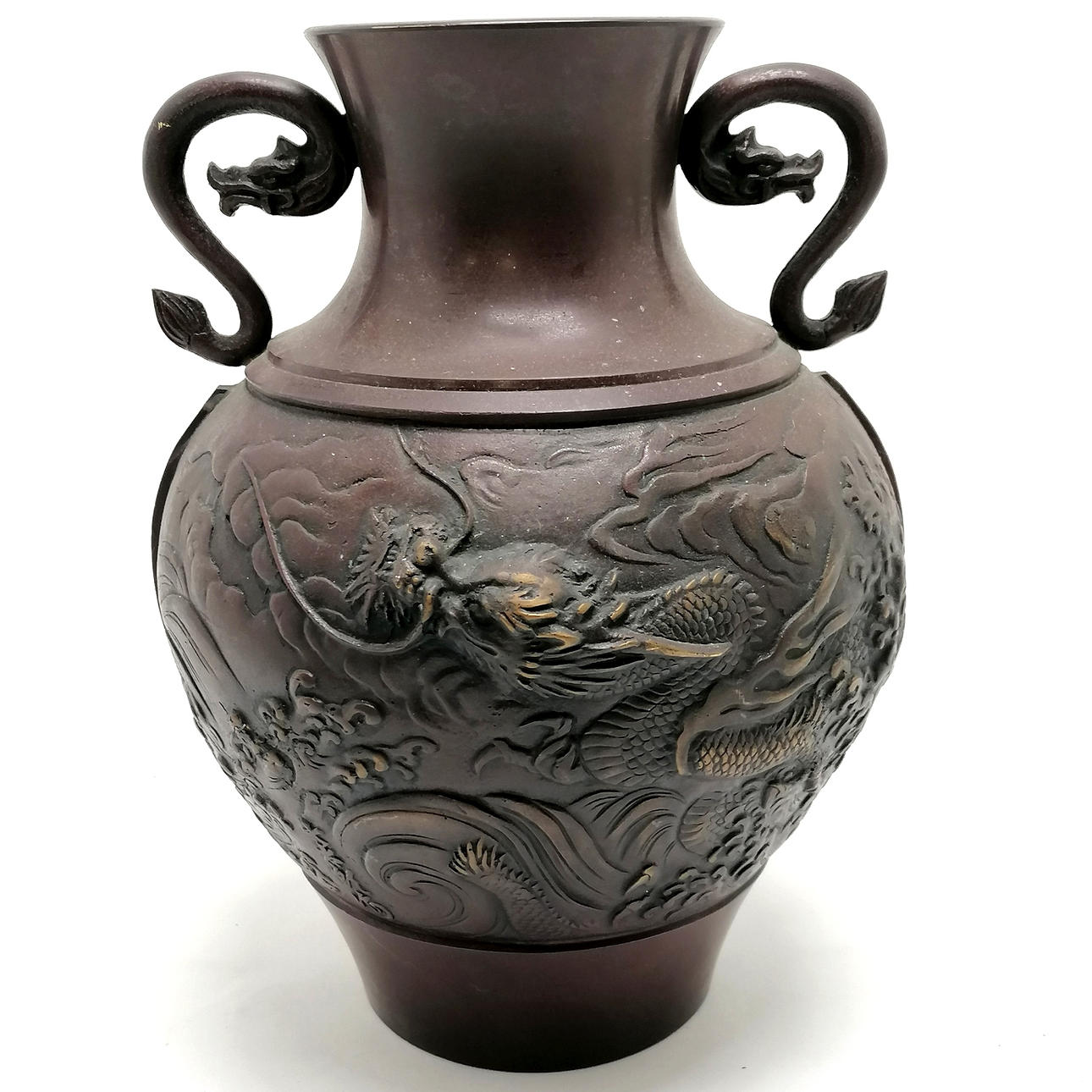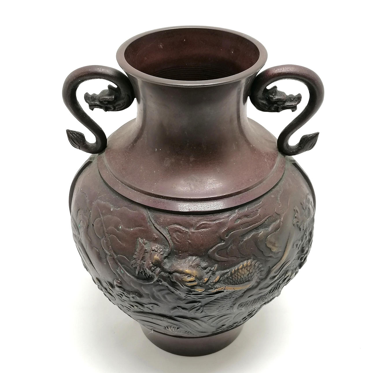 Japanese meiji bronze vase decorated with dragons - 28cm high.