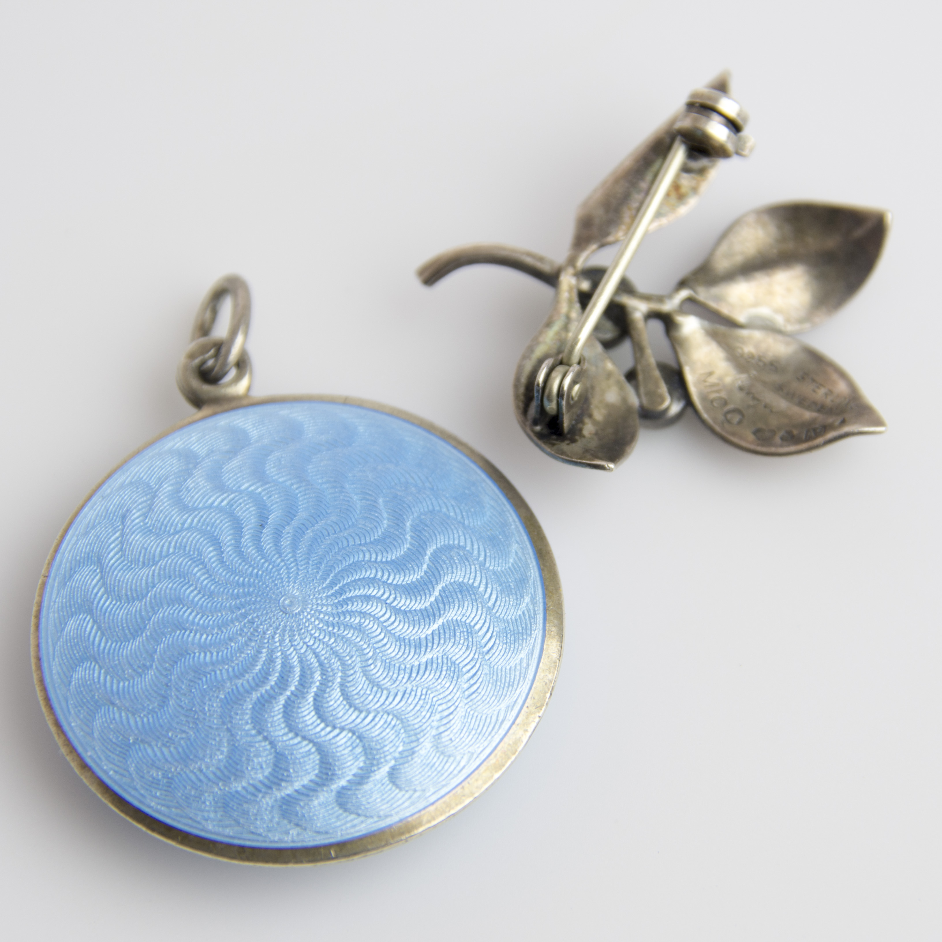 467513. BROOCH AND PENDANT, silver/enamel.