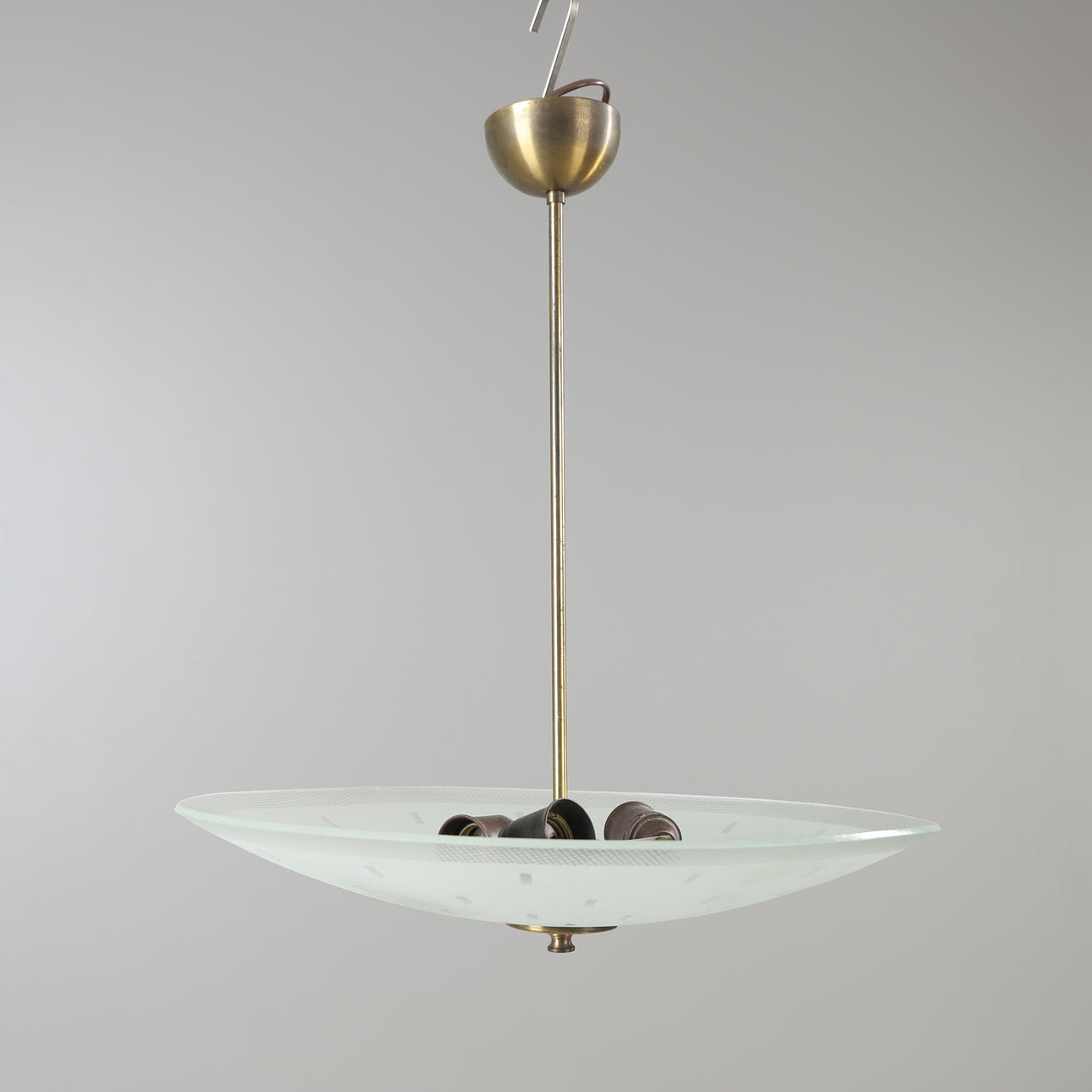 4675183. A brass/glass ceiling lamp, mid 20th century.