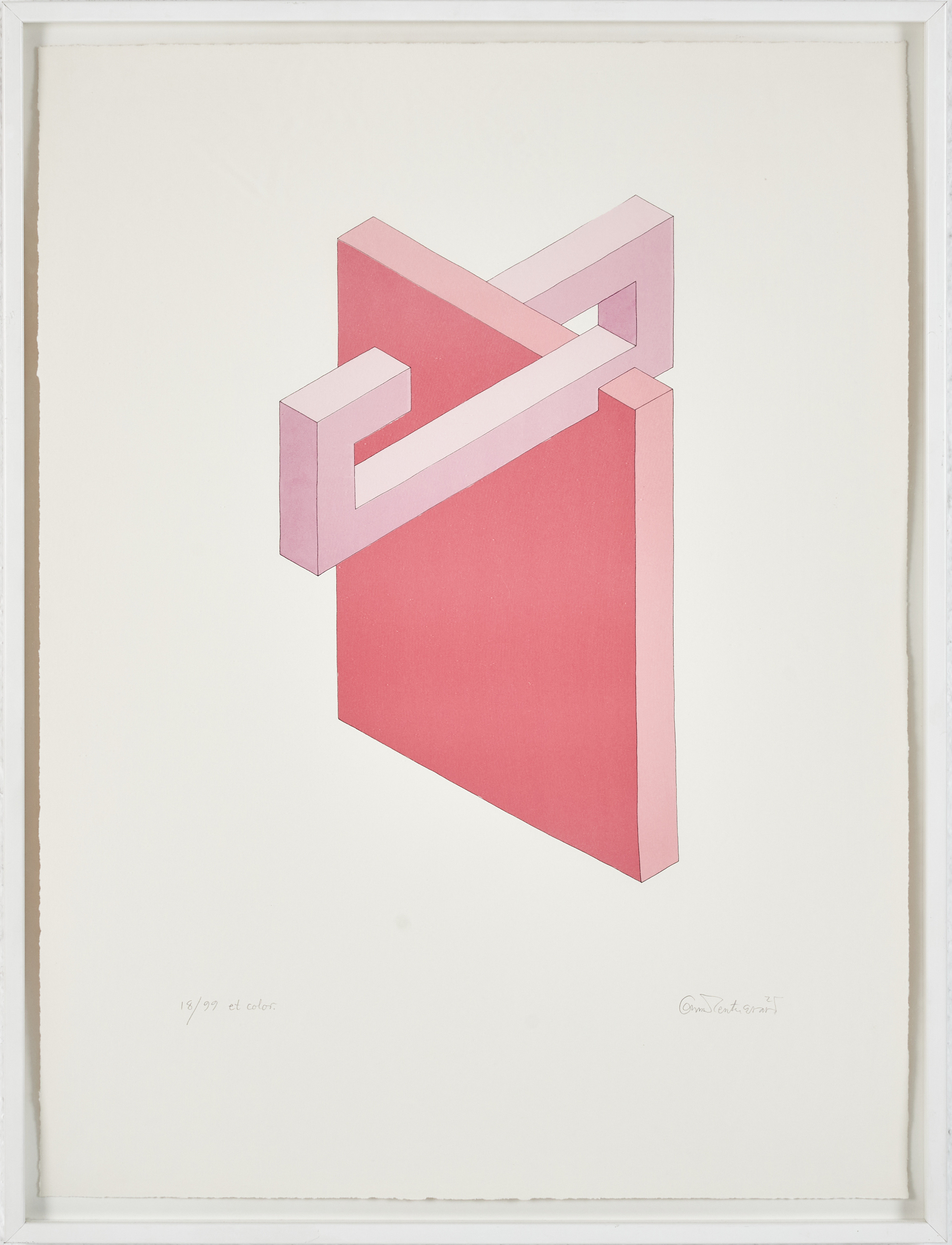 4676109. OSCAR REUTERSVÄRD. “Perspective Japonaise”, impossible figures, 3 pieces, signed and numbered, color lithographs.