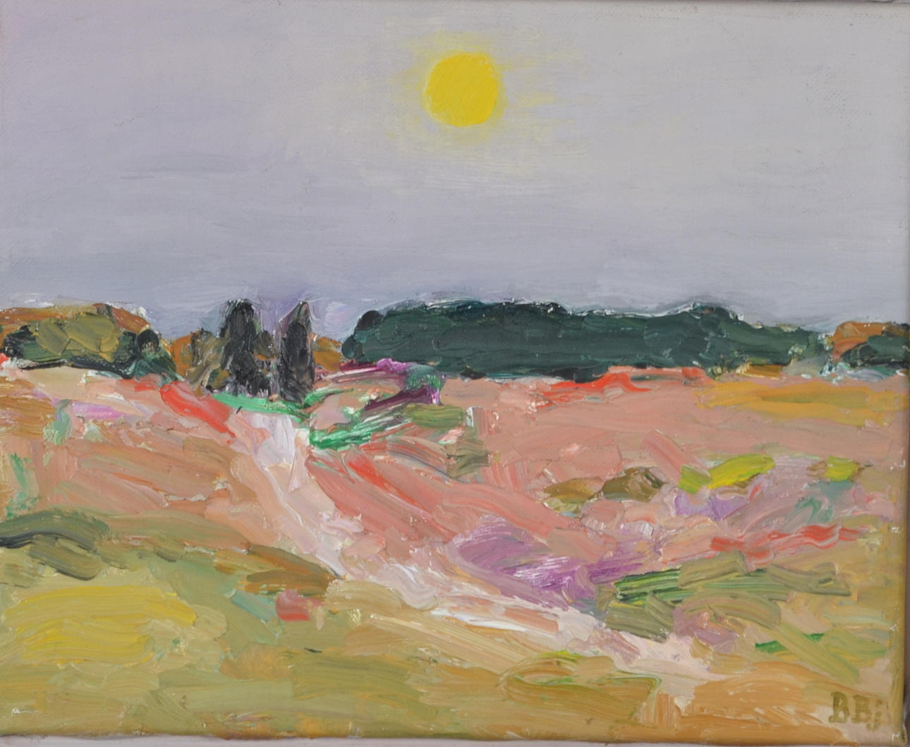 Landscape with sun. Signed BBJ. 24x30 cm.