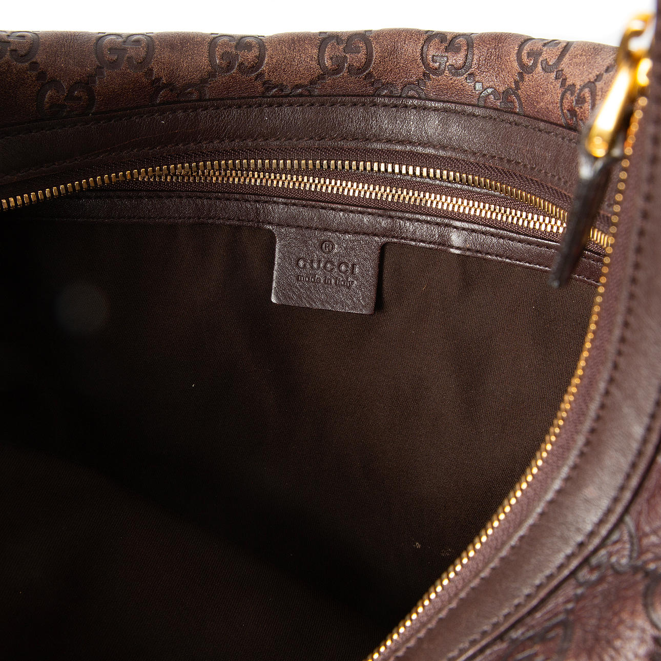 With embossed monogram pattern. Details of gold-colored metal. Inside lined with textile. Shoulder strap adjustable.