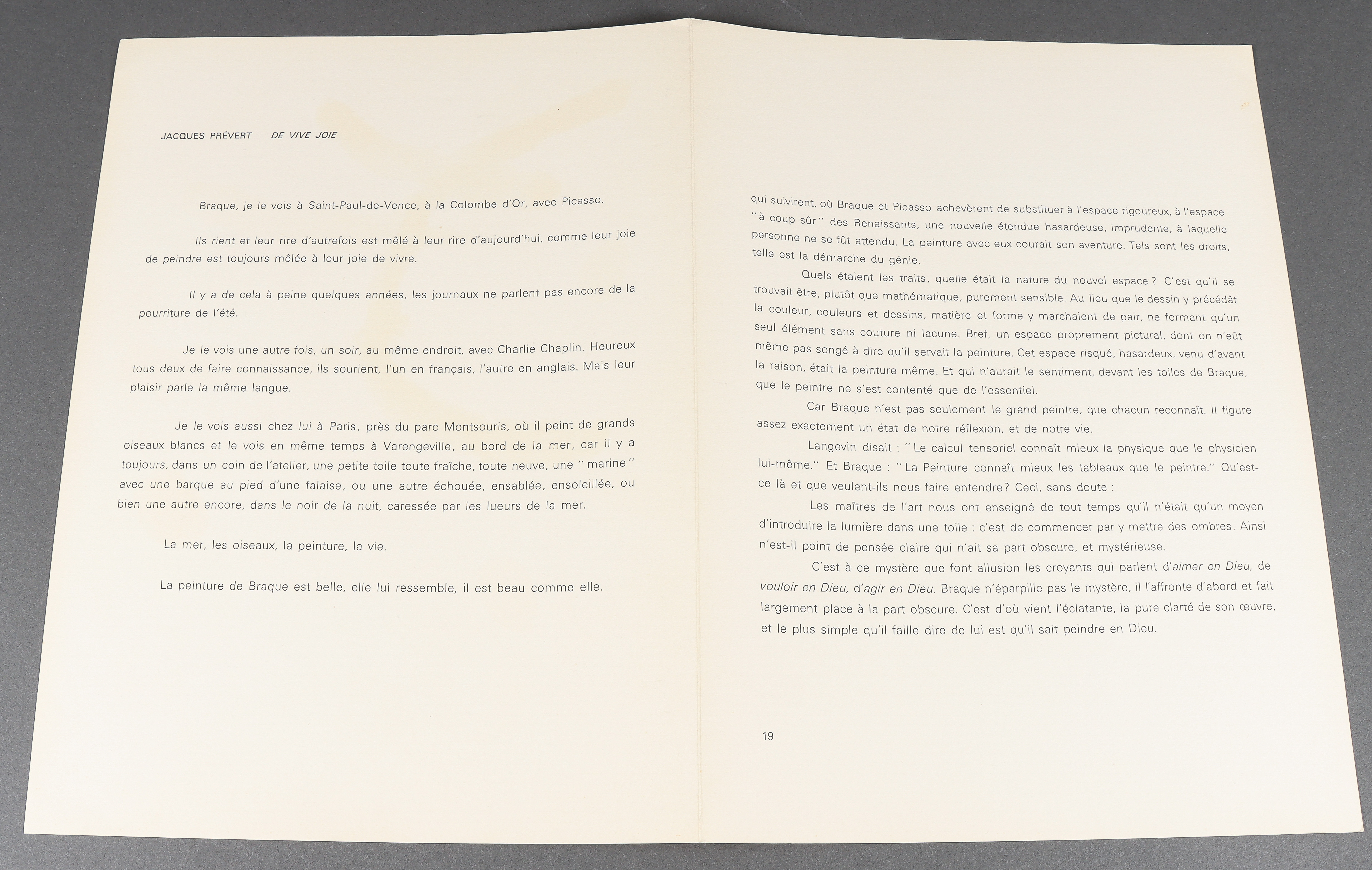 4680657. AFTER PABLO PICASSO. Lithograph, from Derriere le Miroir's “Hommage a Georges Braque”.