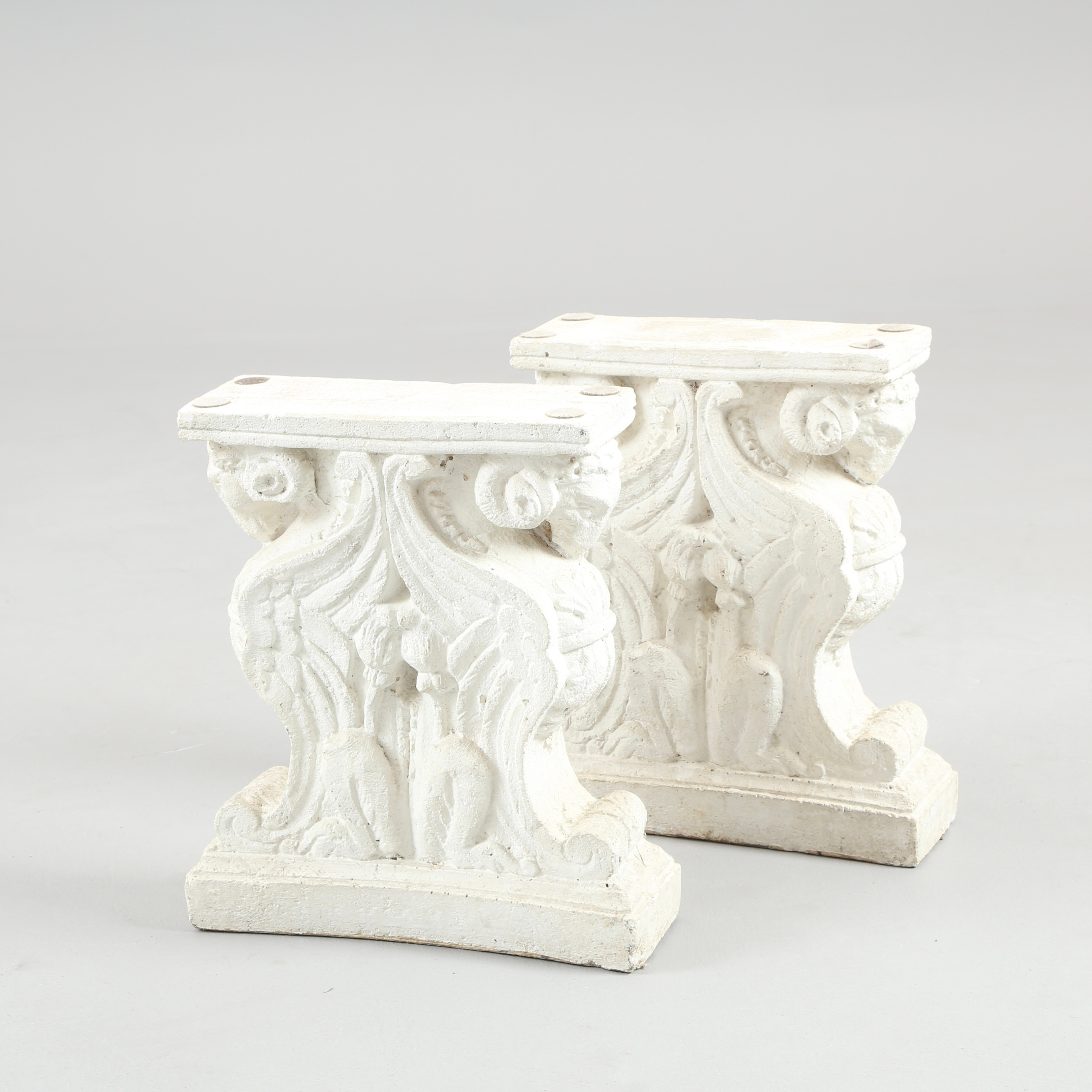 4686255. A pair of white painted cast stone benchtops, the latter half of the 20th century (2).