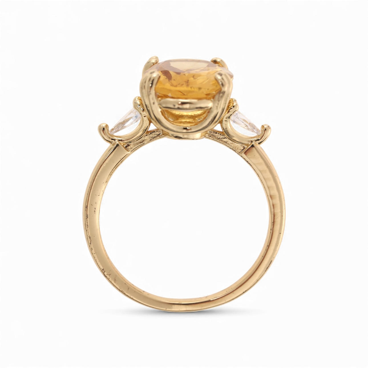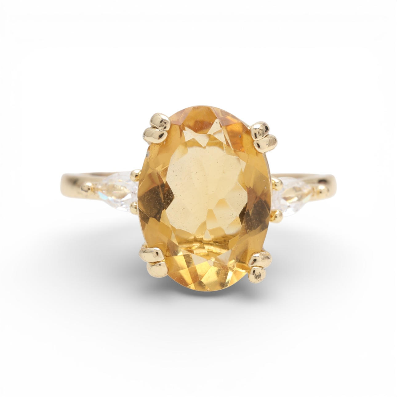 Over-gilded metal, oval cut citrine quartz, 4.17 cts and diamonds simile.