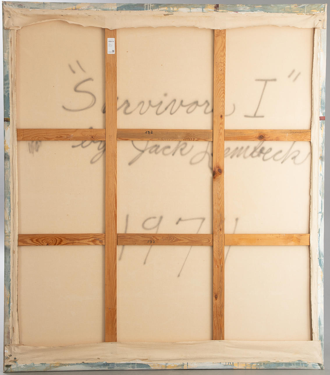 Jack Lembeck (b. 1942), Survivors I, acrylic and colored chalk on canvas, 1974, signed and dated on the back, ca. 208 x 182 cm
