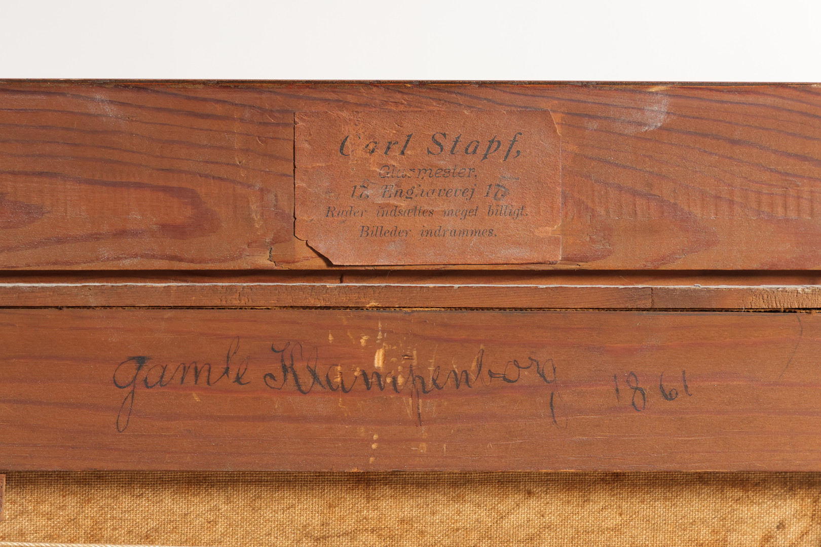 4696788. DANSK MALER, 19. ÅRH.S MIDTE. Summer Day in Gl. Klampenborg. Unsigned. Oil on canvas. Aperture frame marked, “Gamle Klampenborg, 1861".