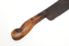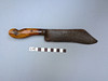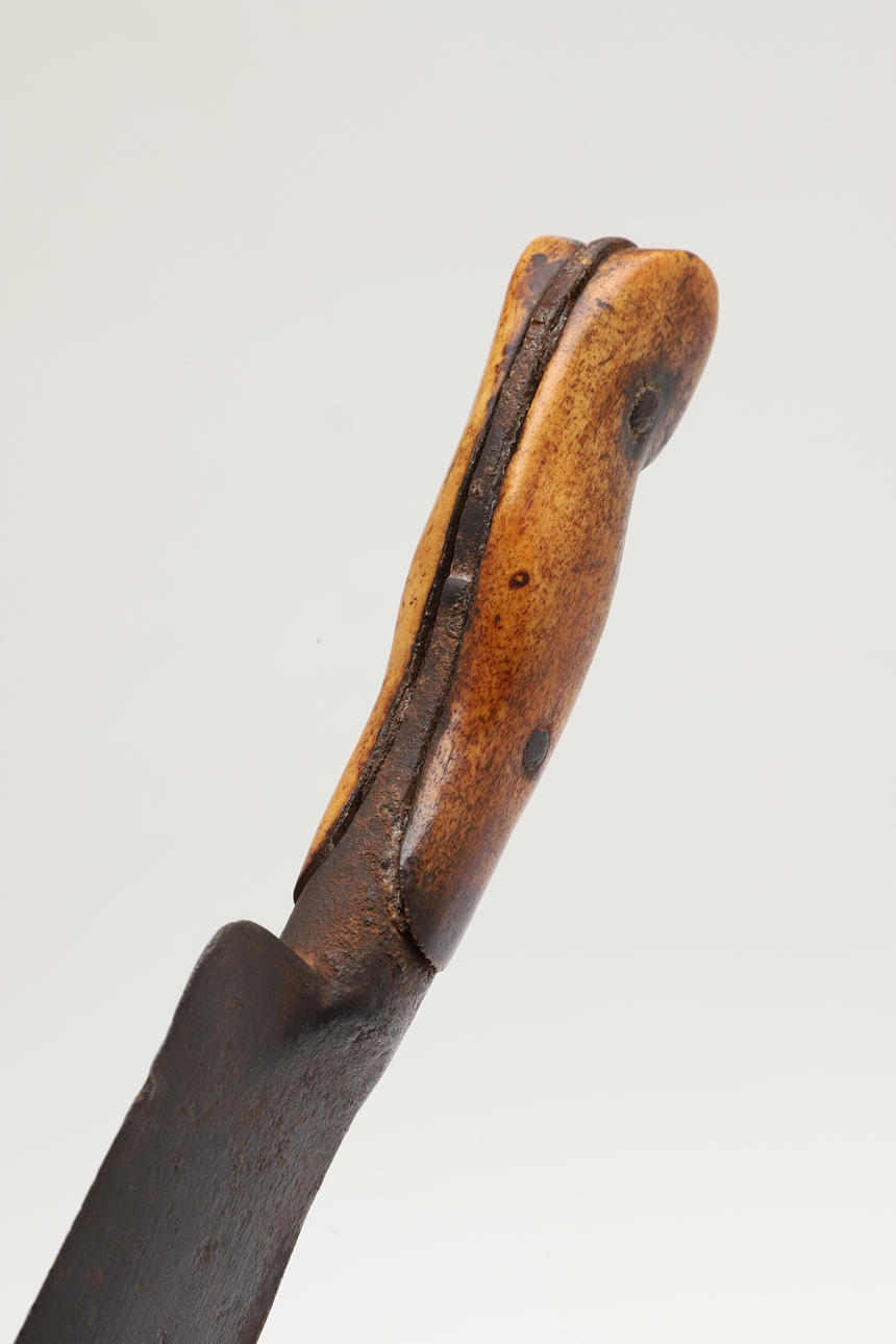 "A most unusual form, well made but it would appear to be a working knife, the blade is heavy showing signs of wear.".