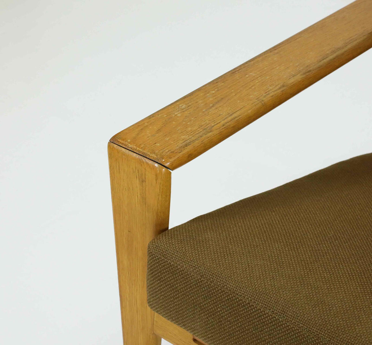 Second hand wear, age wear. There are spots/marks/scratches/abrasions in clothing - repairs. A slack at the armrest.