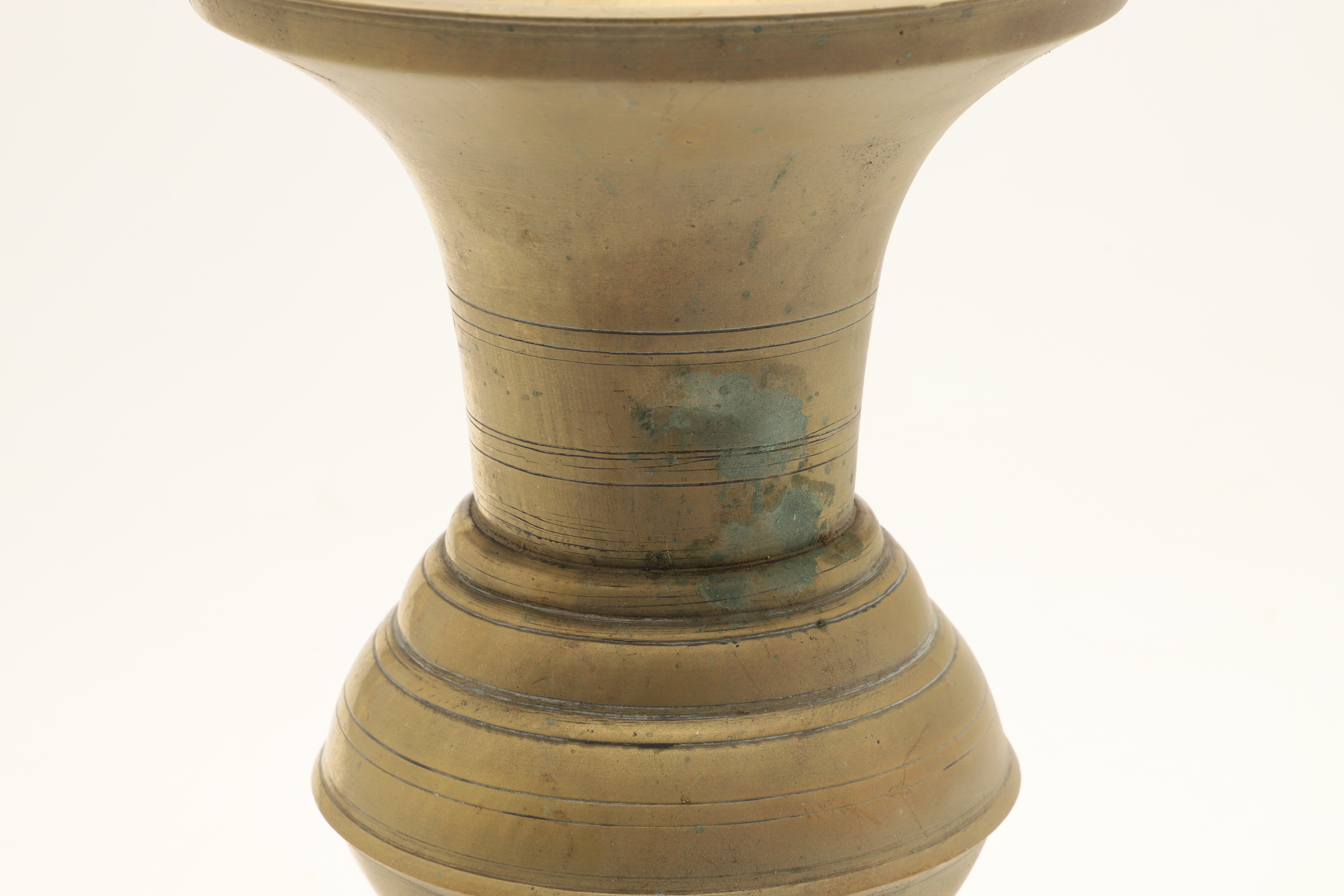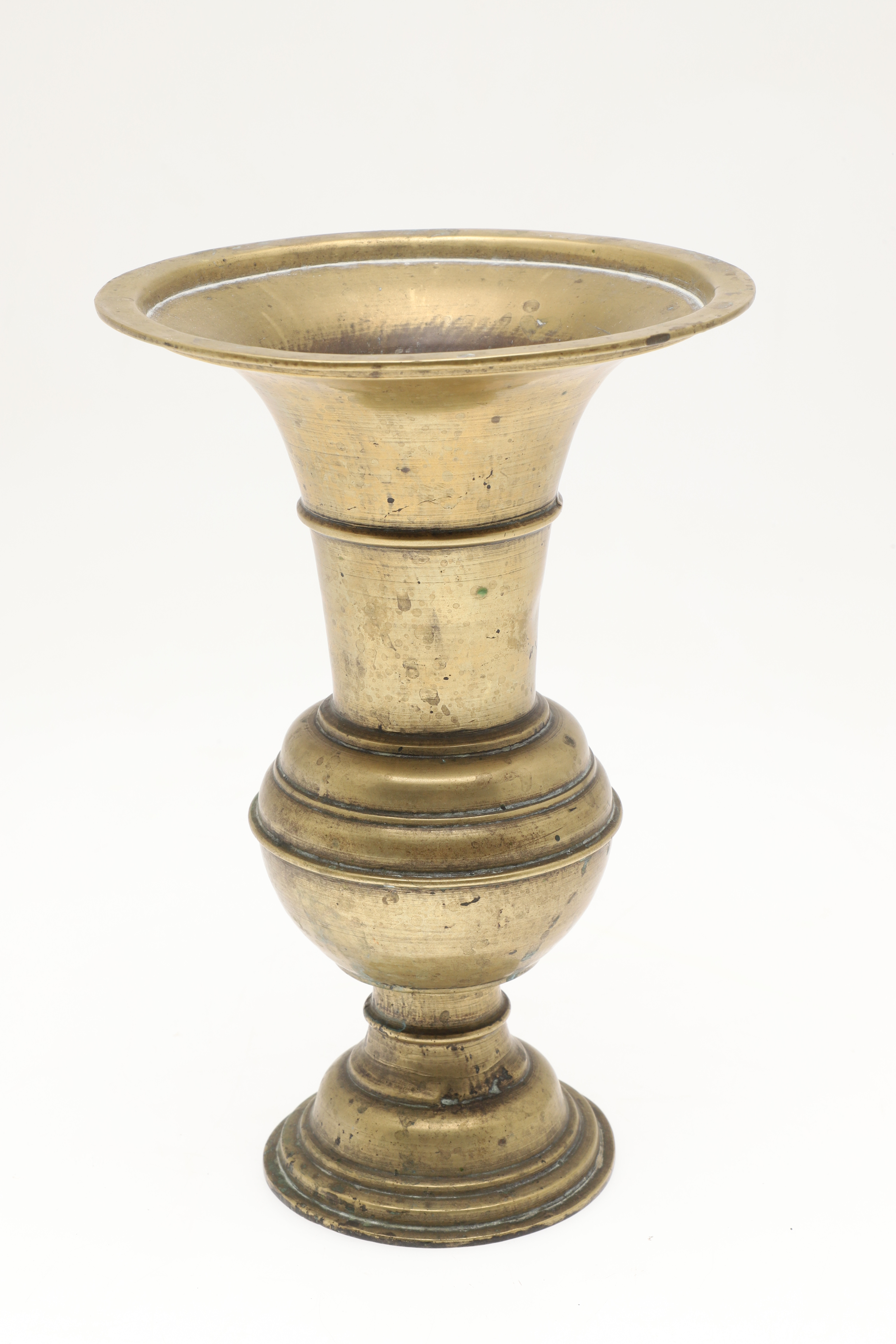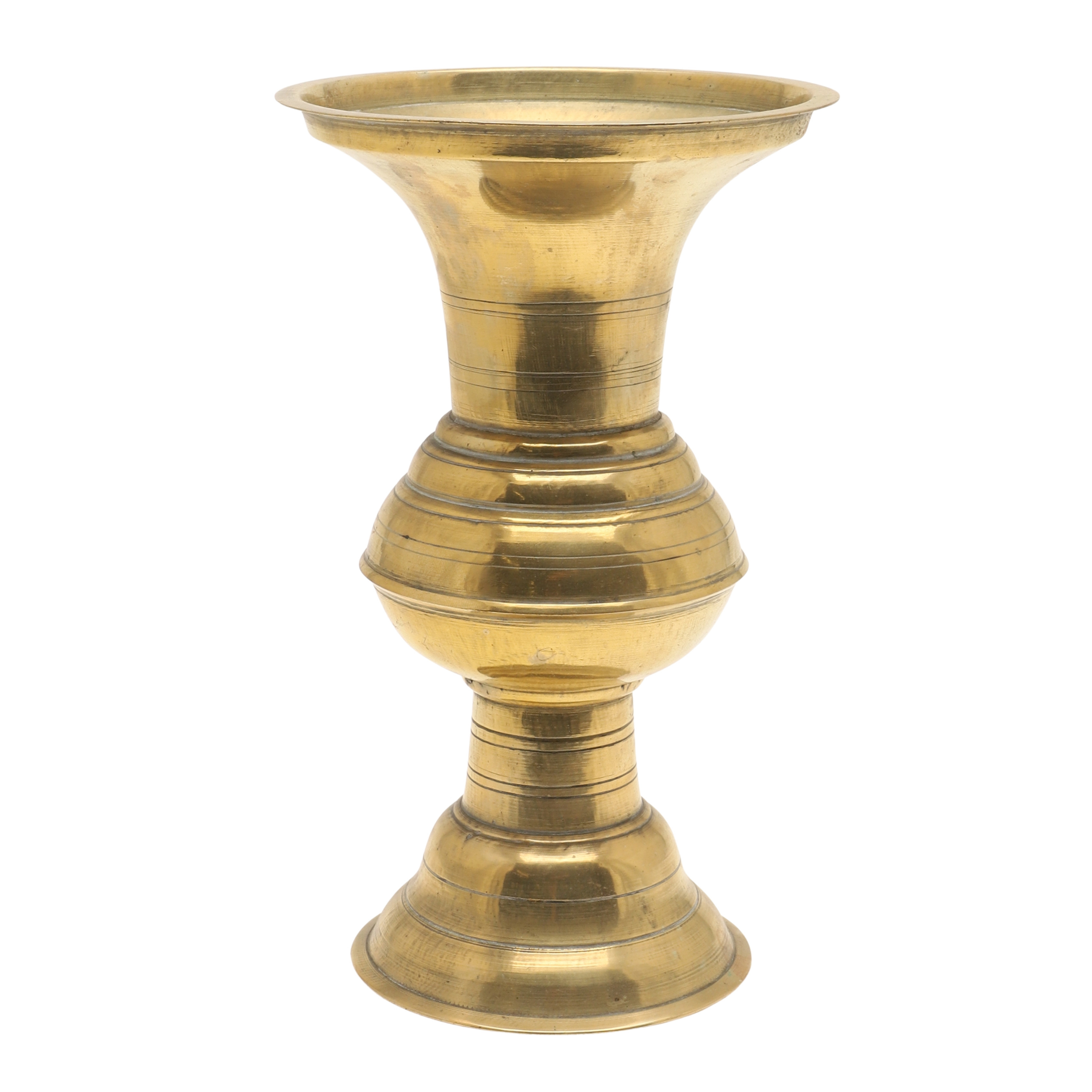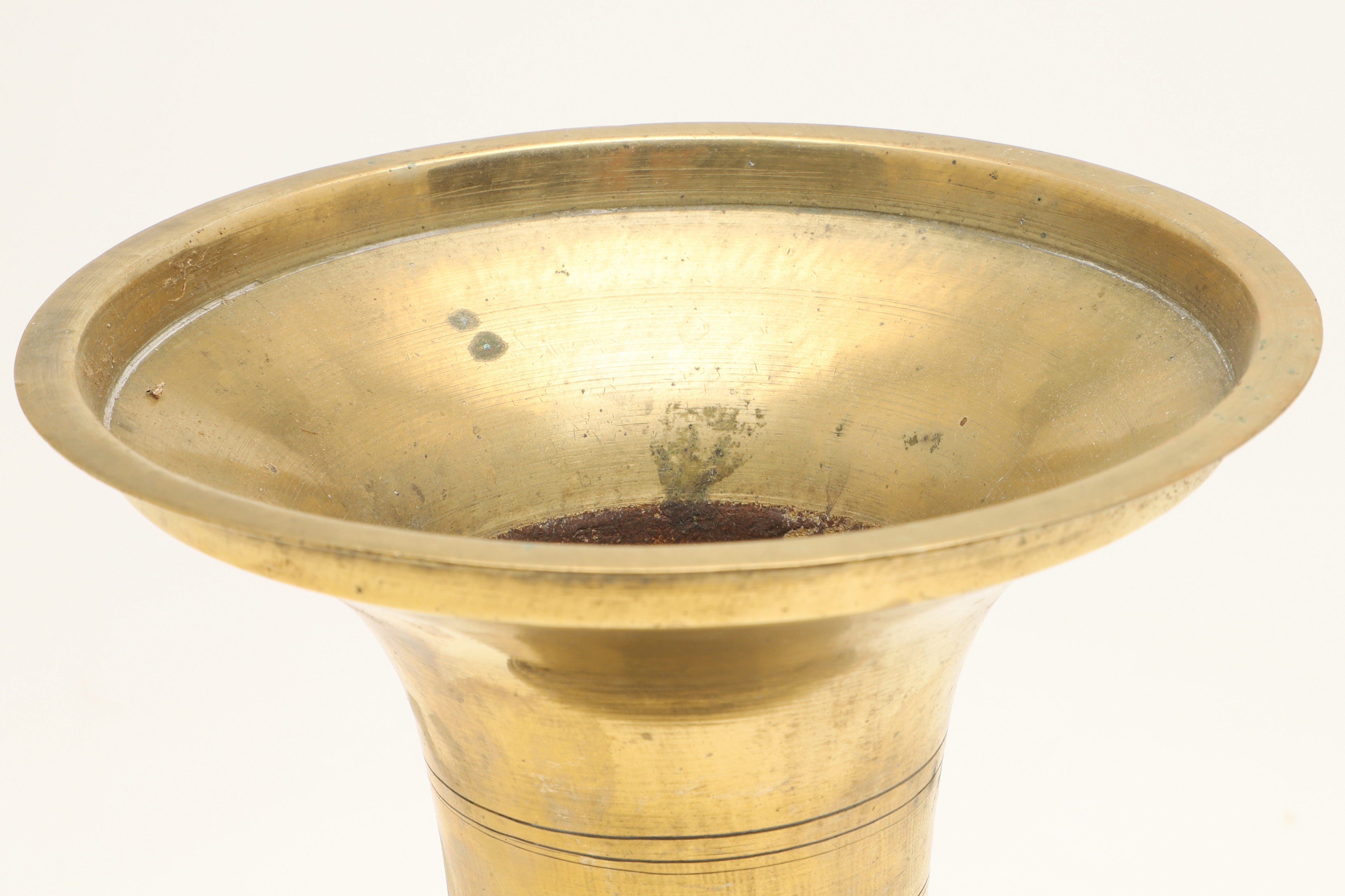 4699629. TWO JAVANESE BRASS SPITTOONS WITH FLARED RIMS.
