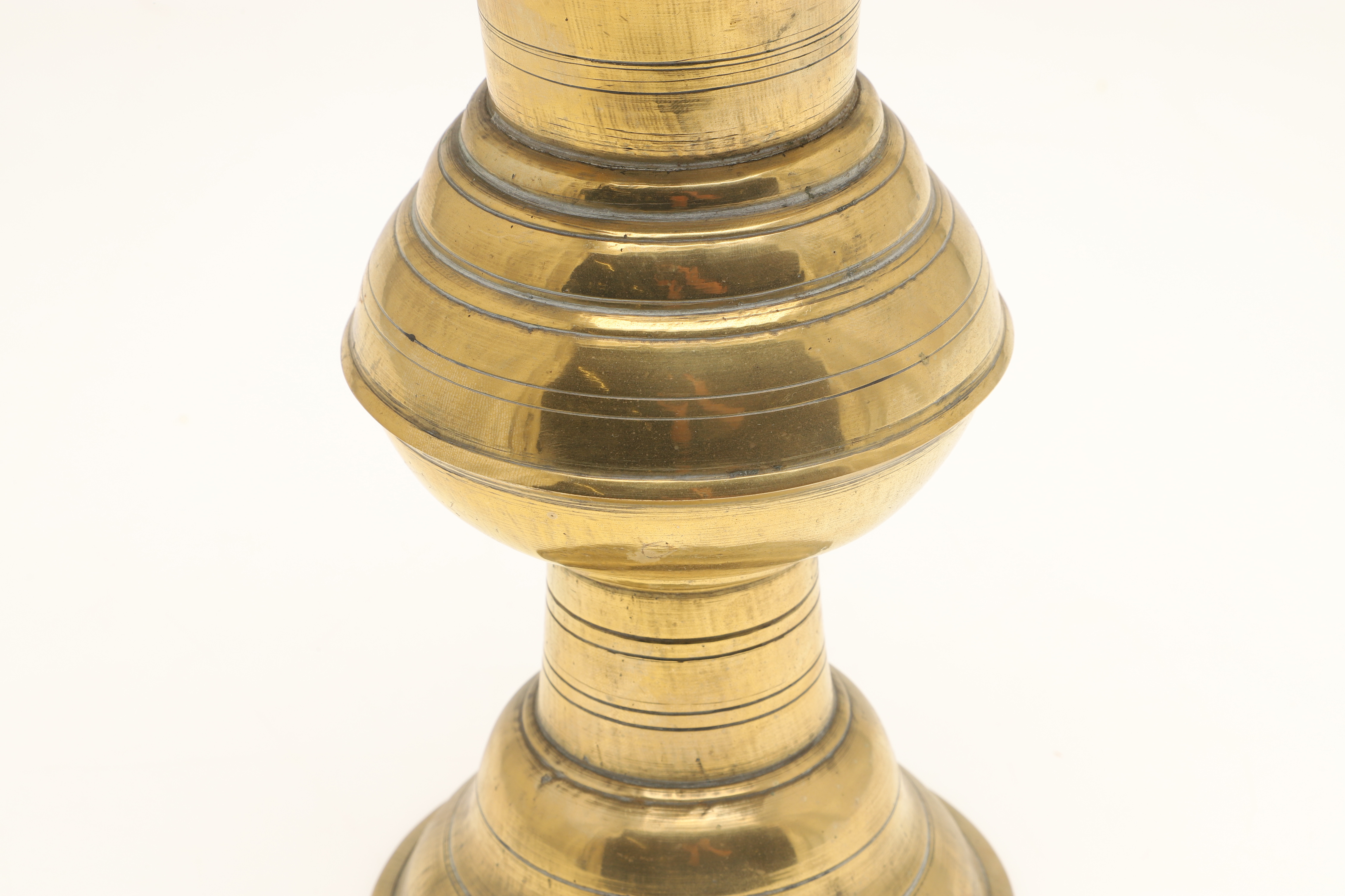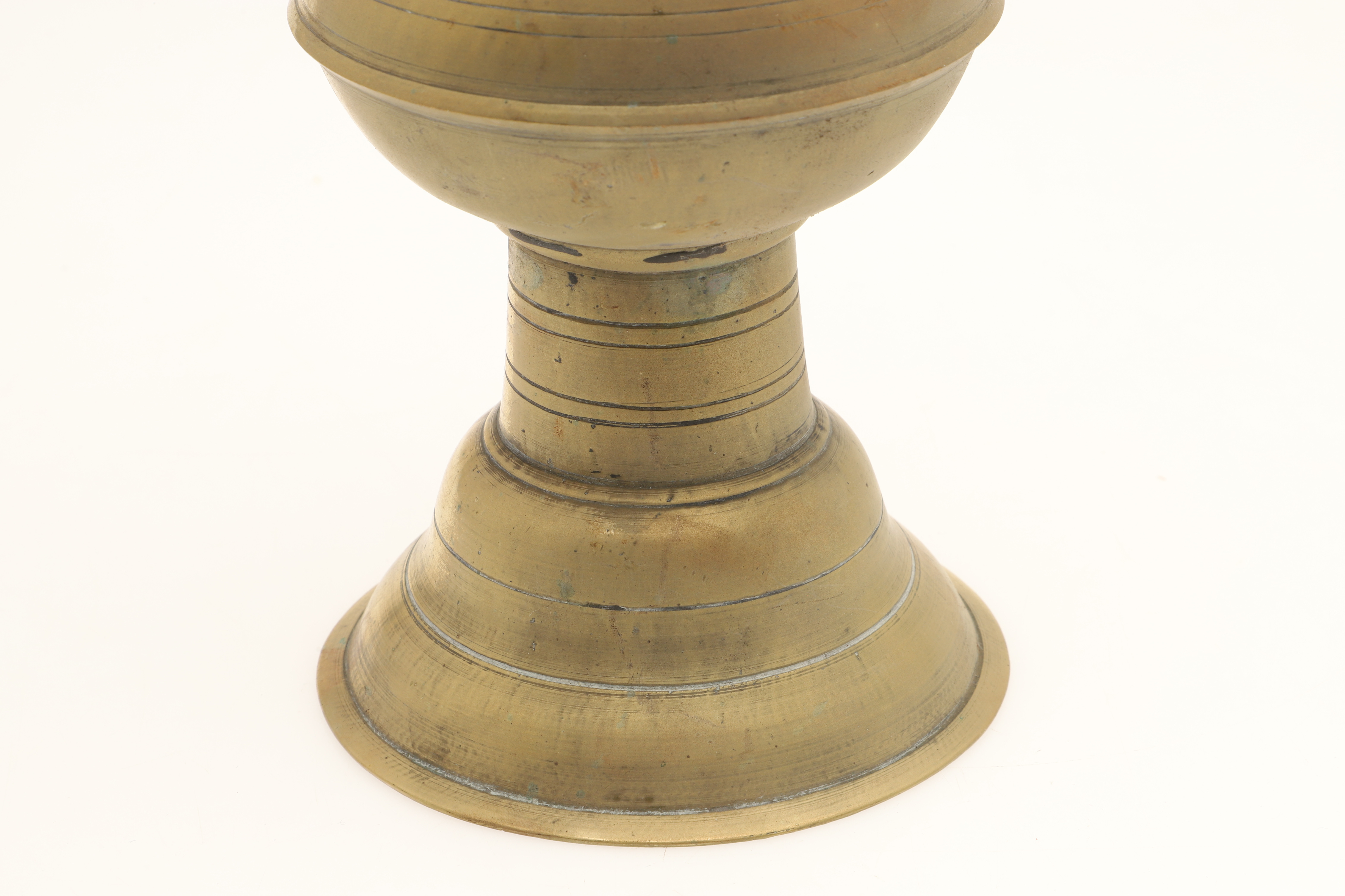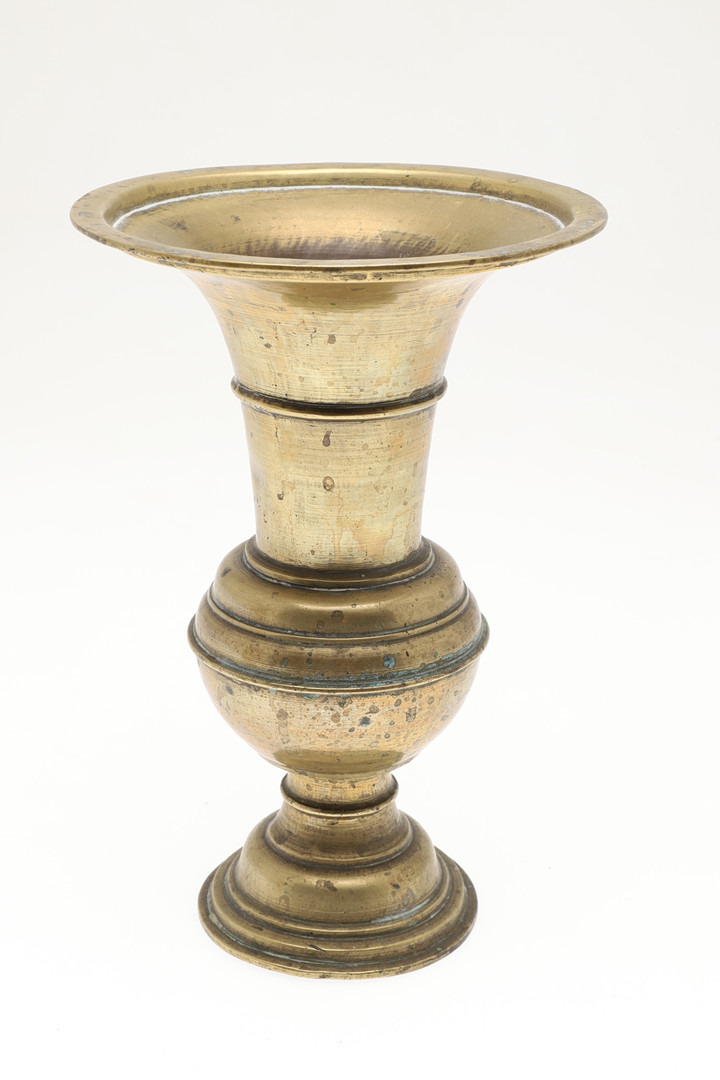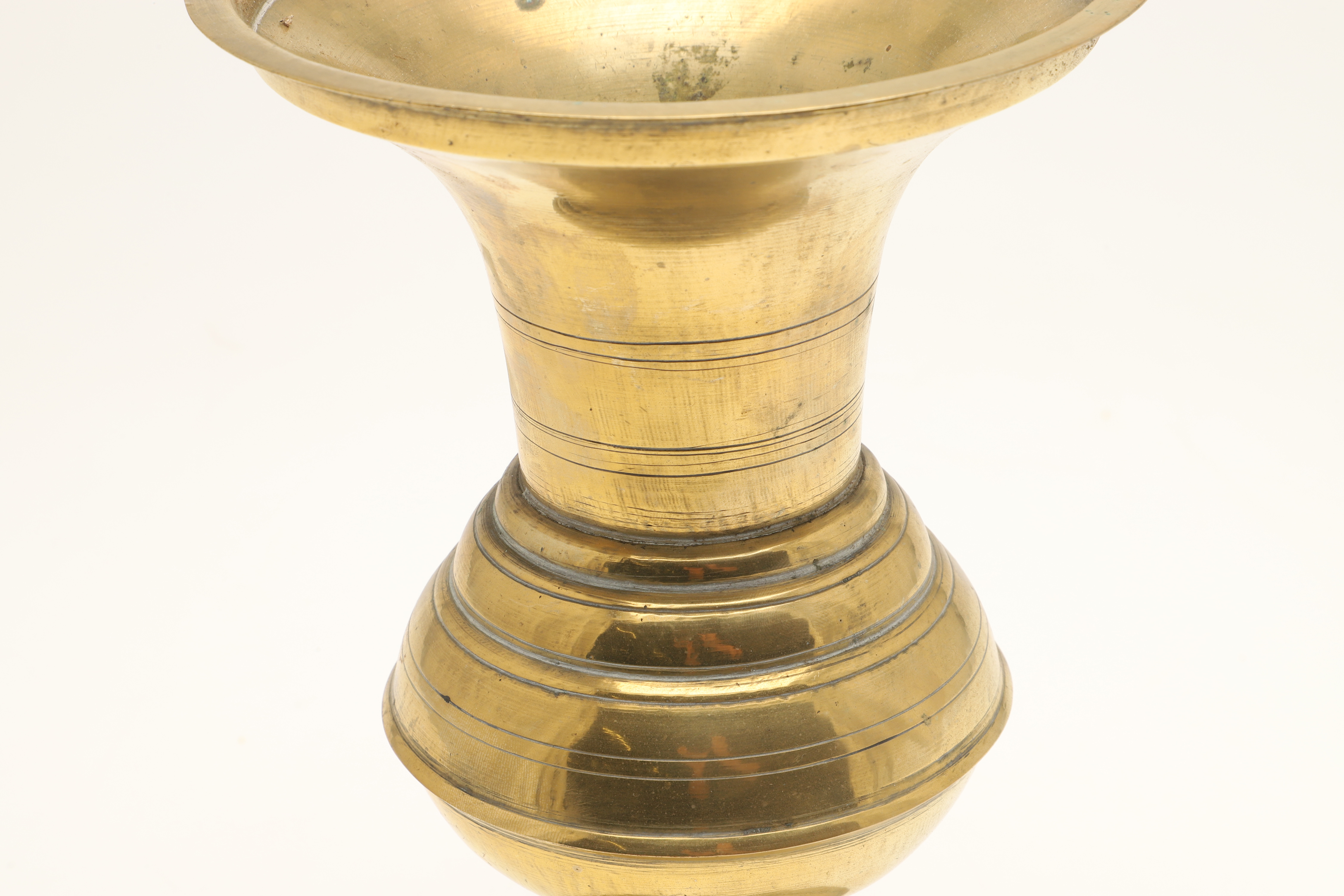 4699629. TWO JAVANESE BRASS SPITTOONS WITH FLARED RIMS.