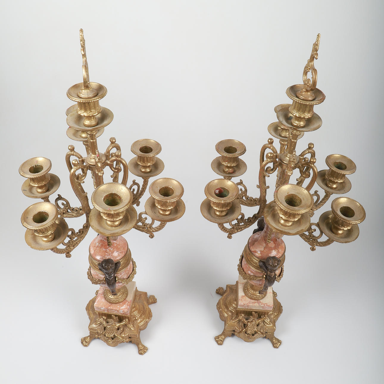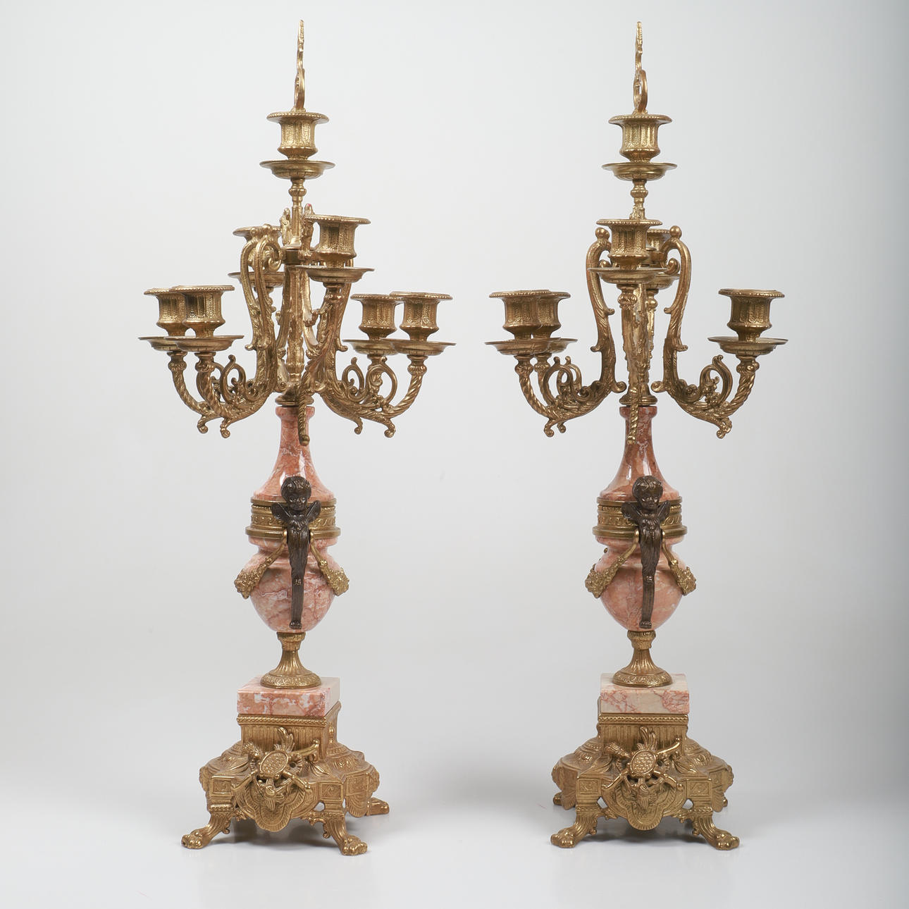 CANDELABRA, 1 pair, gilt/marble, Brevettato, Rococo style.