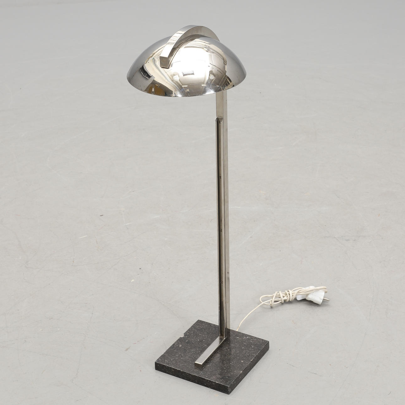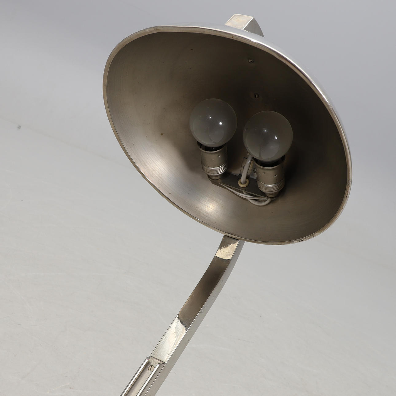 Chrome-plated metal. Two points of light. Foot of marble. Height 85 cm.