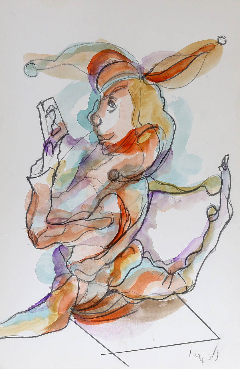 Three watercolour and pencil on paper.