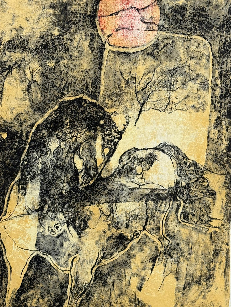 Dang Lebadang, lithograph, 'Composition with Horse II', signed by hand at the bottom right, Dimensions approx.: 54 x 75.5 cm.