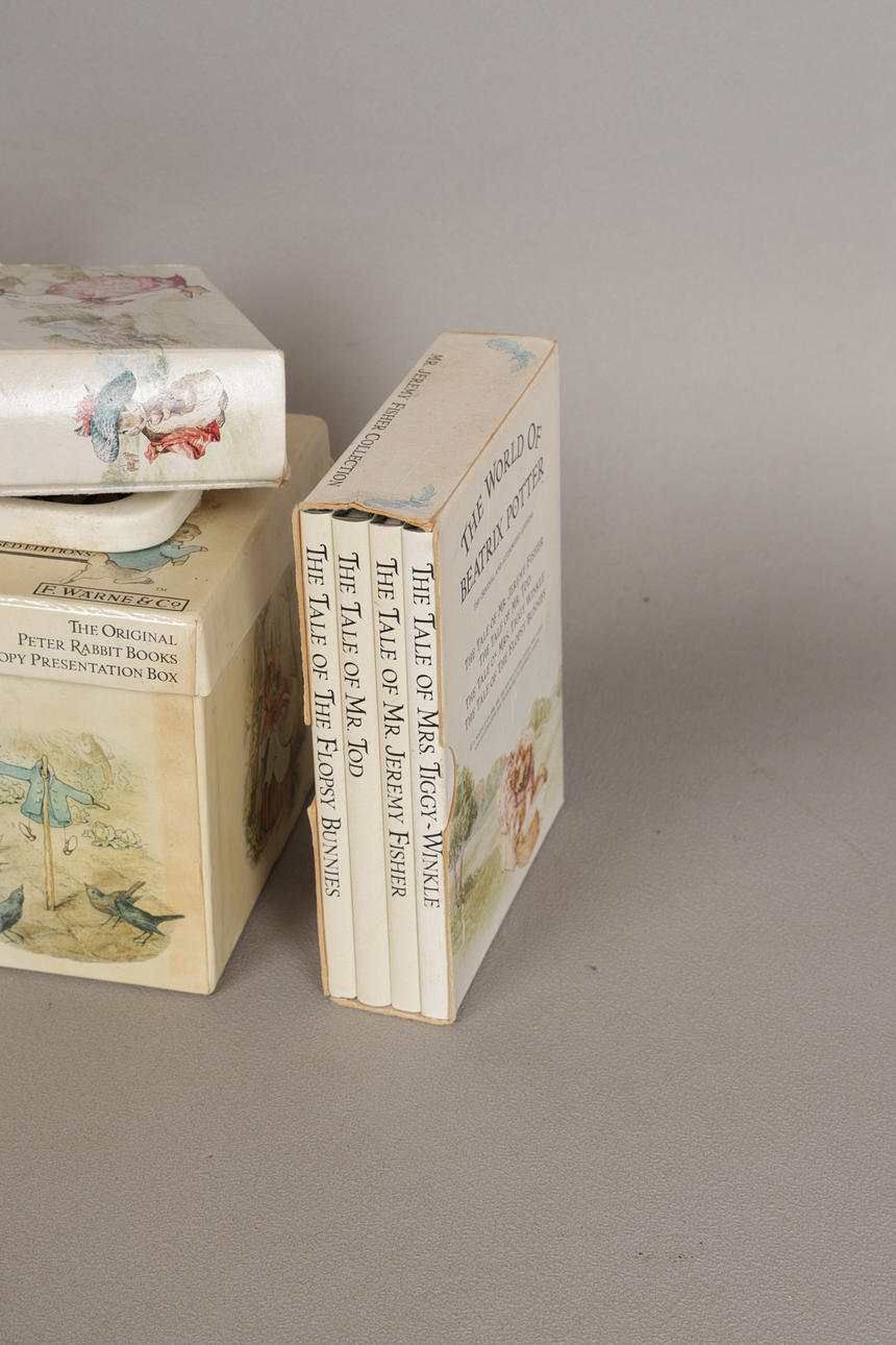 Various F. Warne & Co. published Beatrix Potter Box Sets, to include The World Of Beatrix Potter - Mr. Jeremy Fisher Collection, Miss Moppet Collection, Jemima Puddle-Duck Collection, and Little Pig Robinson Collection, together with The Friends Of Peter Rabbit 11-Copy Presentation Box and The World Of Peter Rabbit 12-Copy Presentation Box which measures 16cm x 12cm x 12cm. (6).