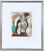 Abstract figure composition, engraving hand colored with gouache, sign. Robert Jacobsen, no. 89/100. Light dimensions 29 x 34,5 cm. Frame dimensions 51 x 60 cm.