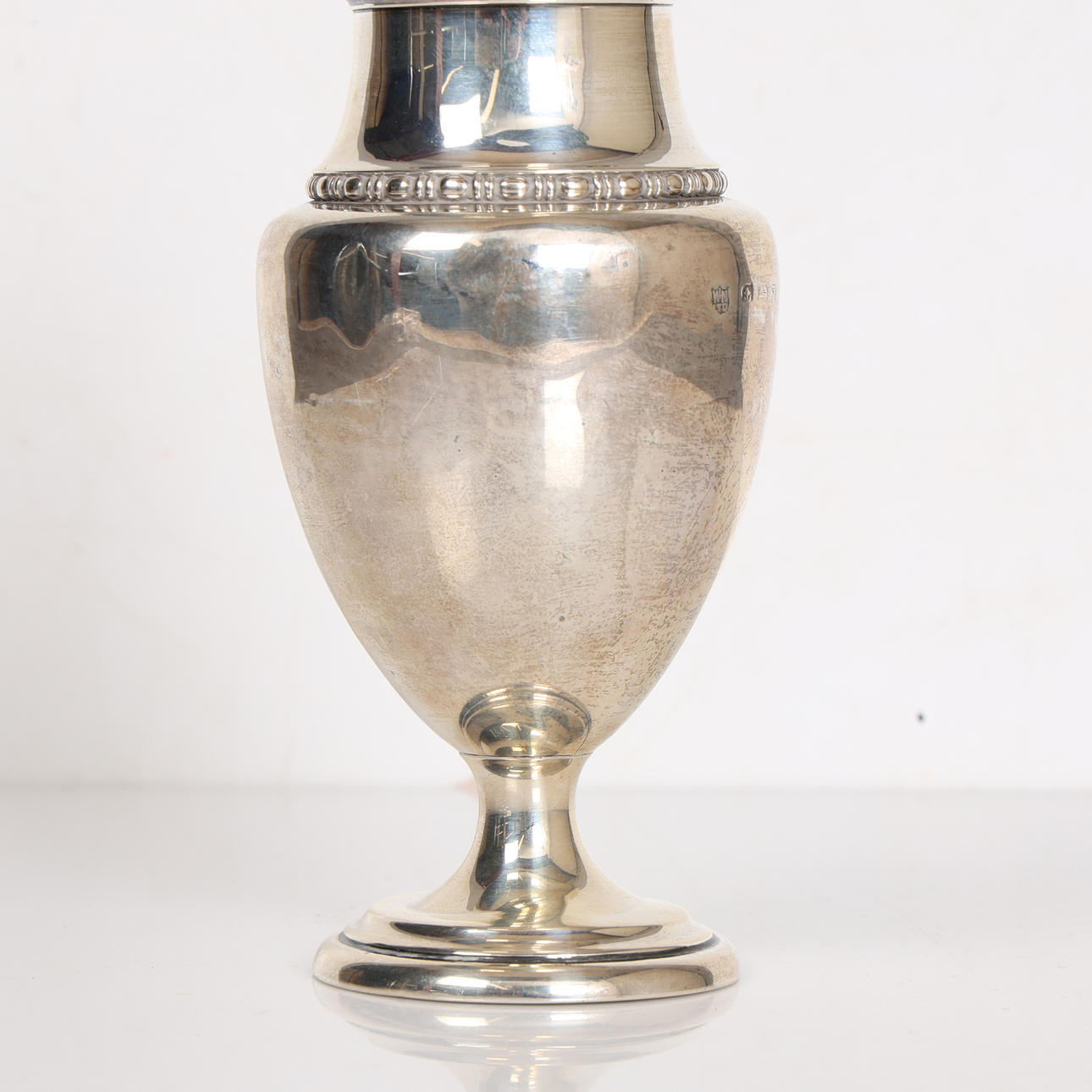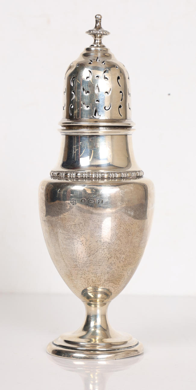 Birmingham 1924, maker William Neale Ltd. of baluster form with pierced detachable top section, 17cm high, 2.8oz.