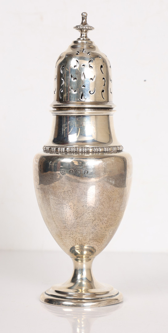 4712867. A GEORGE V SILVER SUGAR CASTER.