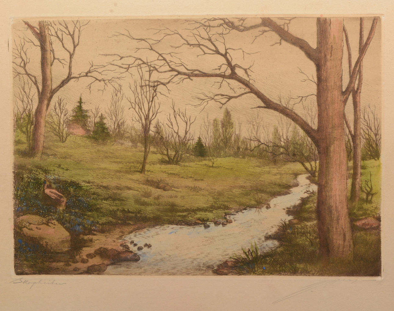 JEAN SKOGLUND. Forest Brook. Color etching.