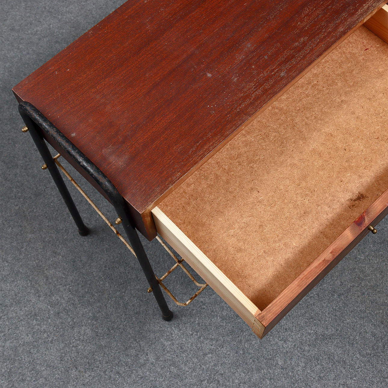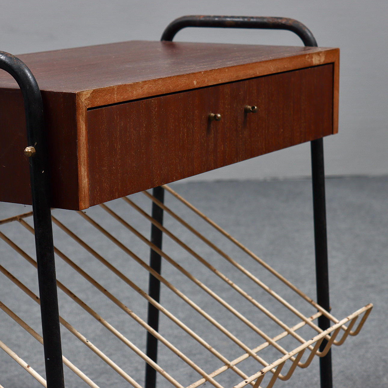 Age and use wear, scratches, marks, missing handle part.