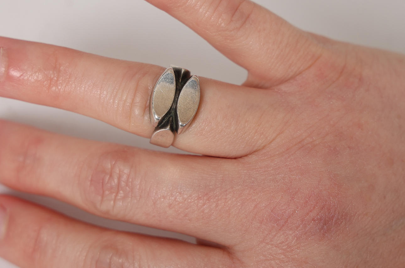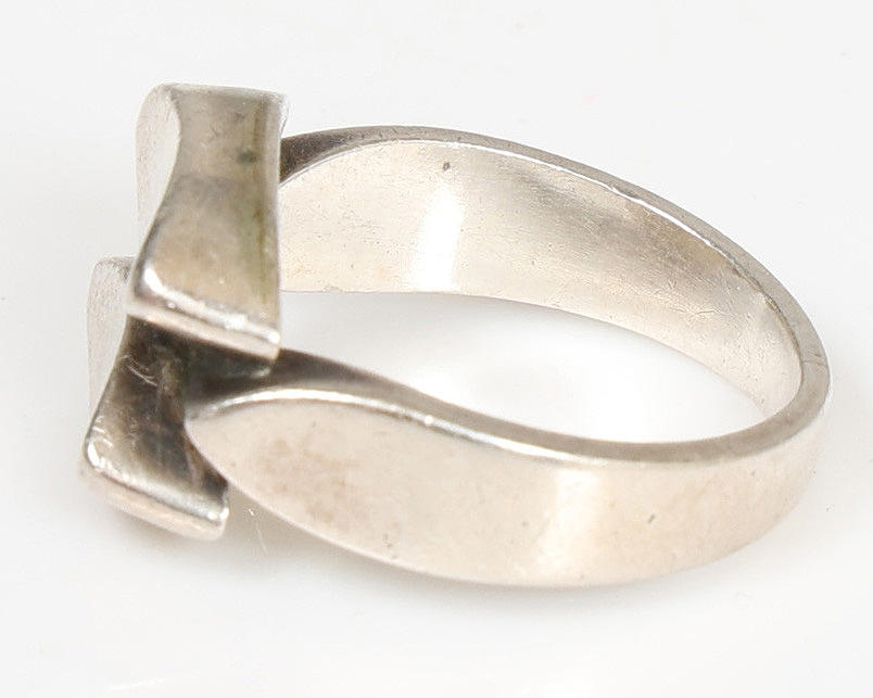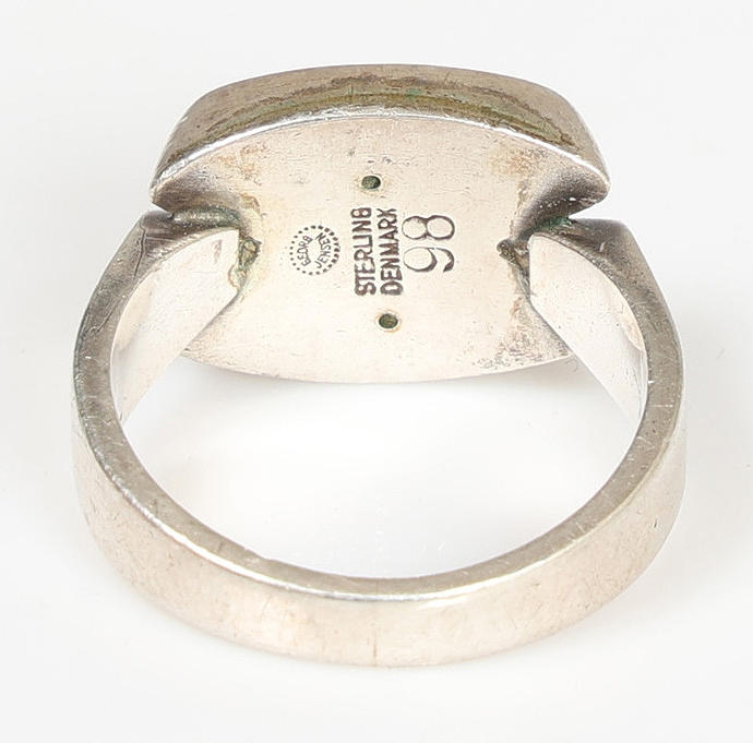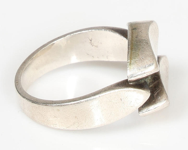 Designed by Arno Mallinowski, no.98, with double oval lozenge pattern head, ring size L, 4.7g.