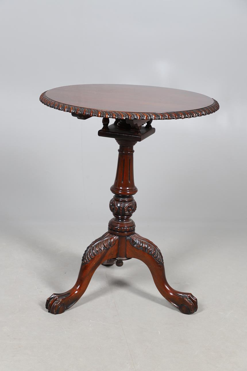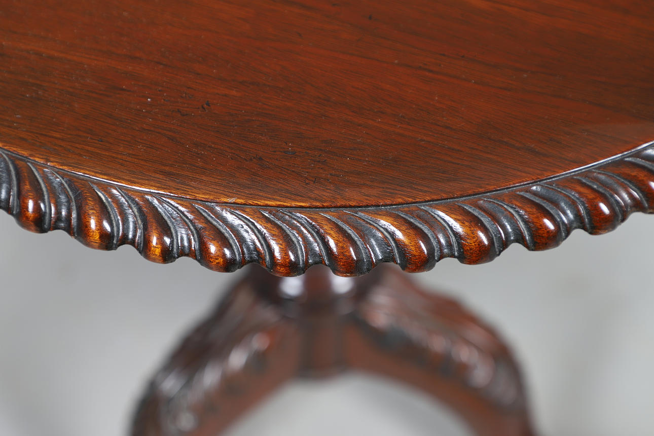 with gadrooned edge and birdcage movement, all raised on carved column and out swept legs, 60cm diameter x 72cm high.