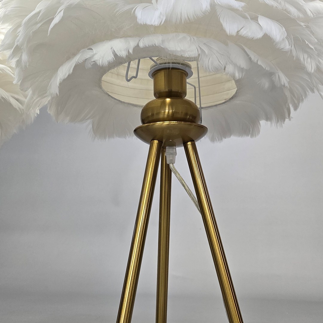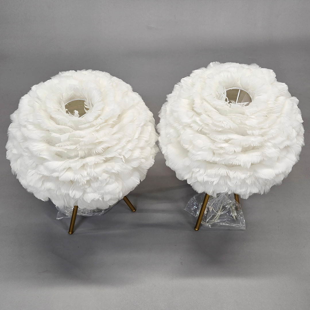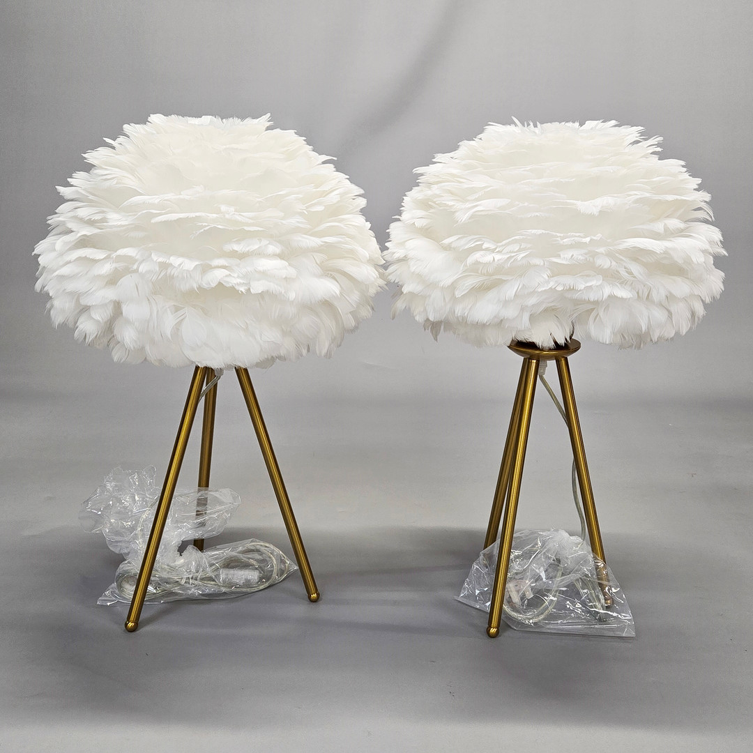 4737330. TWO FEATHER SHADES & TRIPOD LAMP BASES.