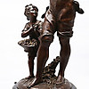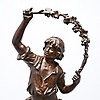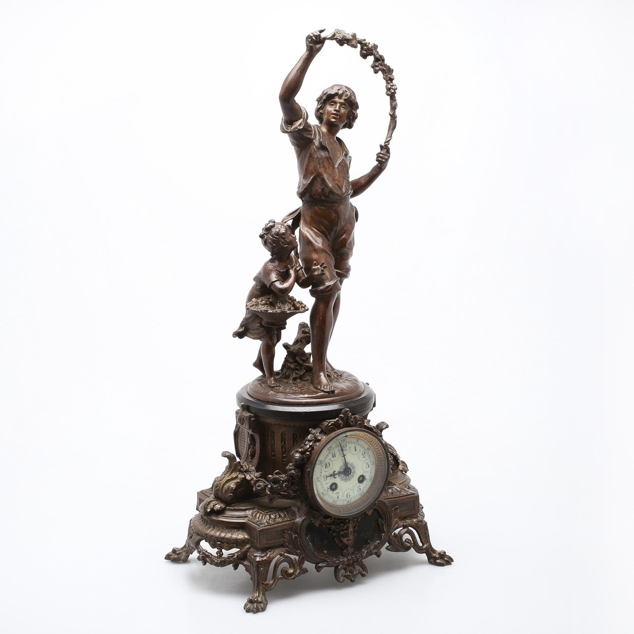 Table clock decorated with a. standing boy and girl Height 63 cm.