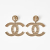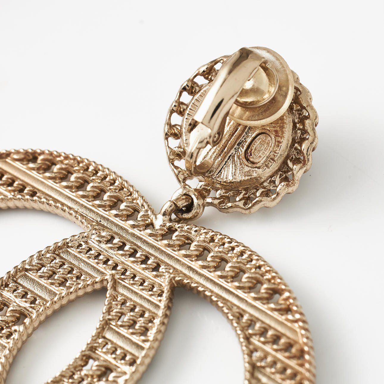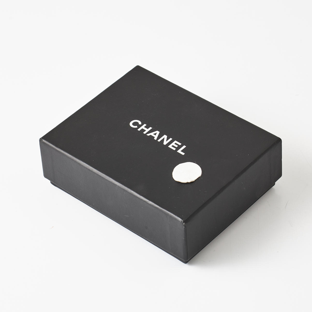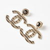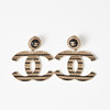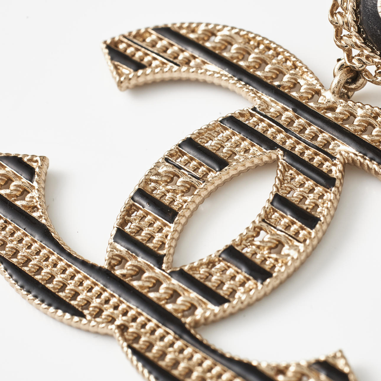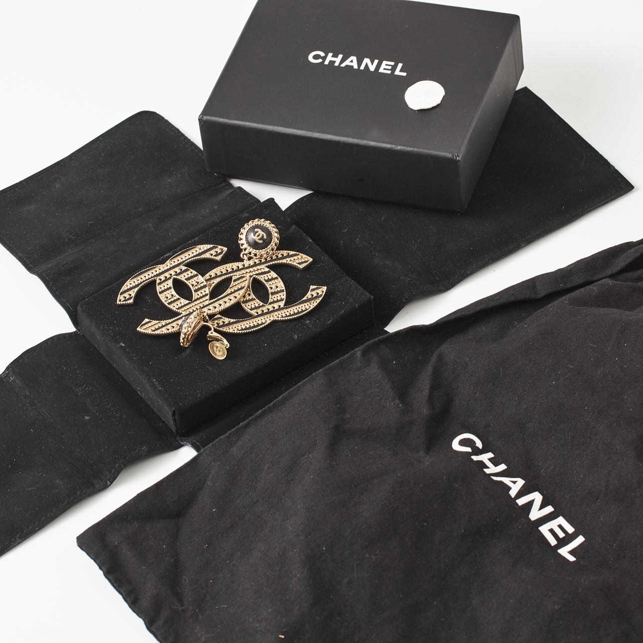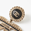 Gold-tone and openwork in the shape of the CC logo, black enamel and decoration with black calfskin and CC logo, from 2020, Made in France, width 5.3 cm, height incl. fastening 5.1 cm, original pouch, box and dustbag included.