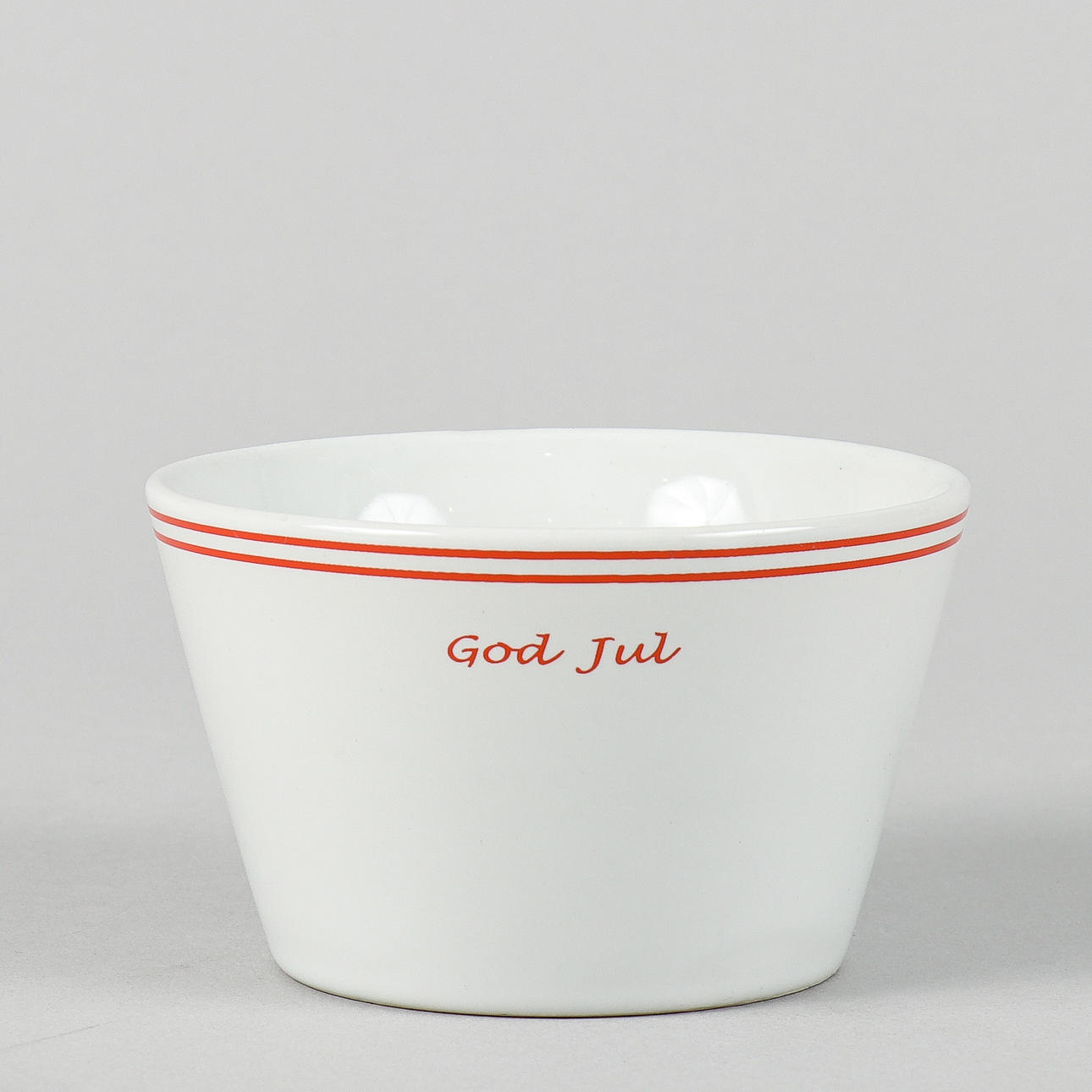 Pottery with red decor and the text Merry Christmas.