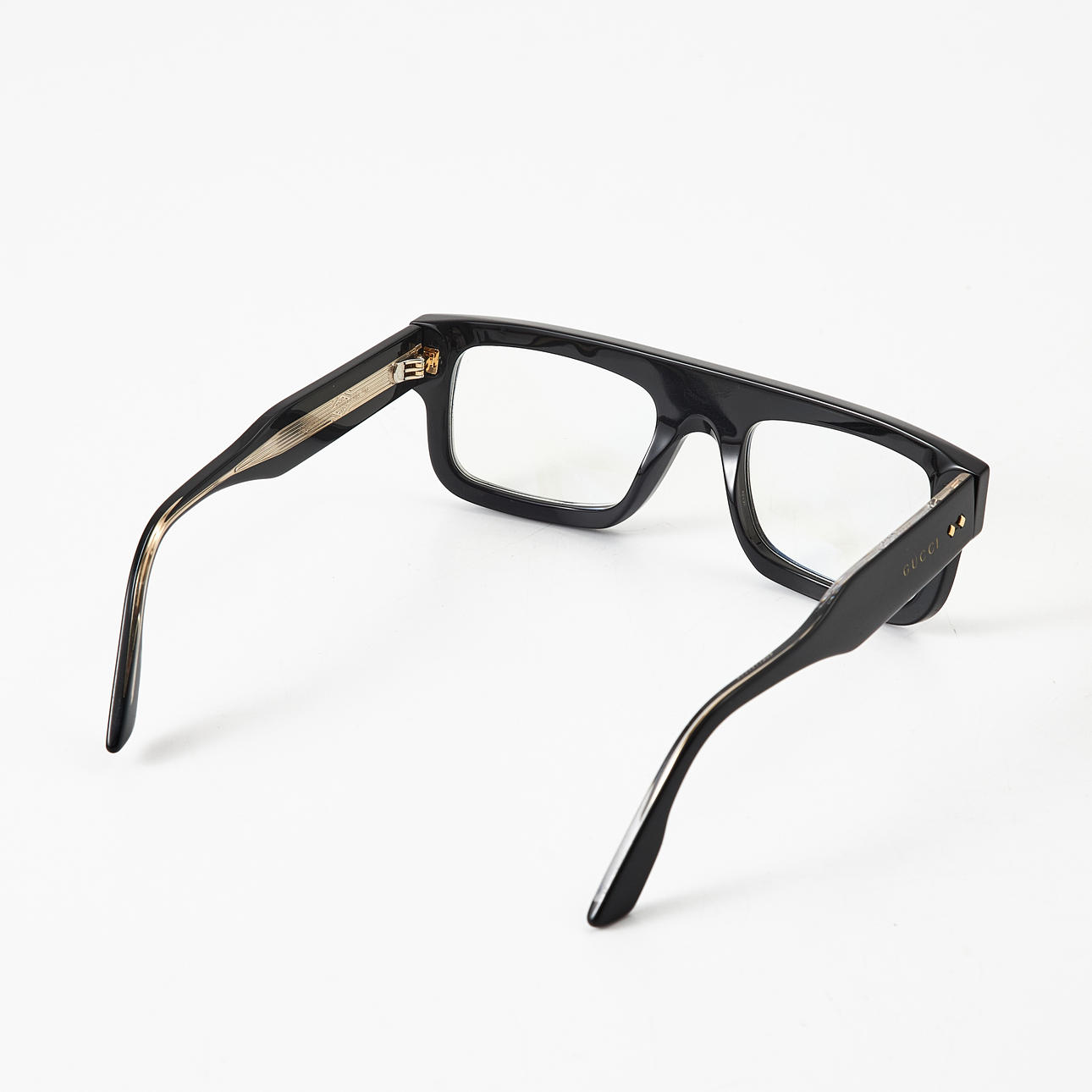 Black acetate, with gold-tone details, temples with Gucci, marked GG 10850 001, pouch, cleaning cloth, case and original certificate included