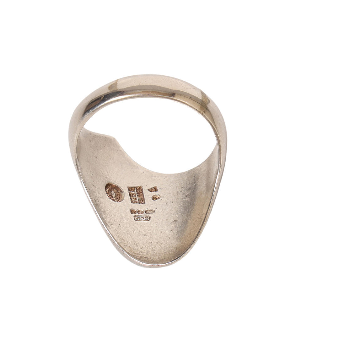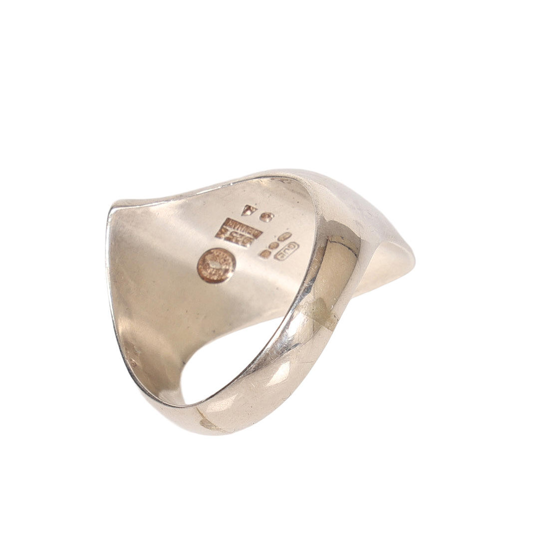 No.91, of abstract asymmetric form, stamped to the interior of the band, ring size 2, 17.7g.