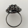 4747302. “GOTHIC” ROSETTE RING WITH ROCK CRYSTAL AND ONYX.