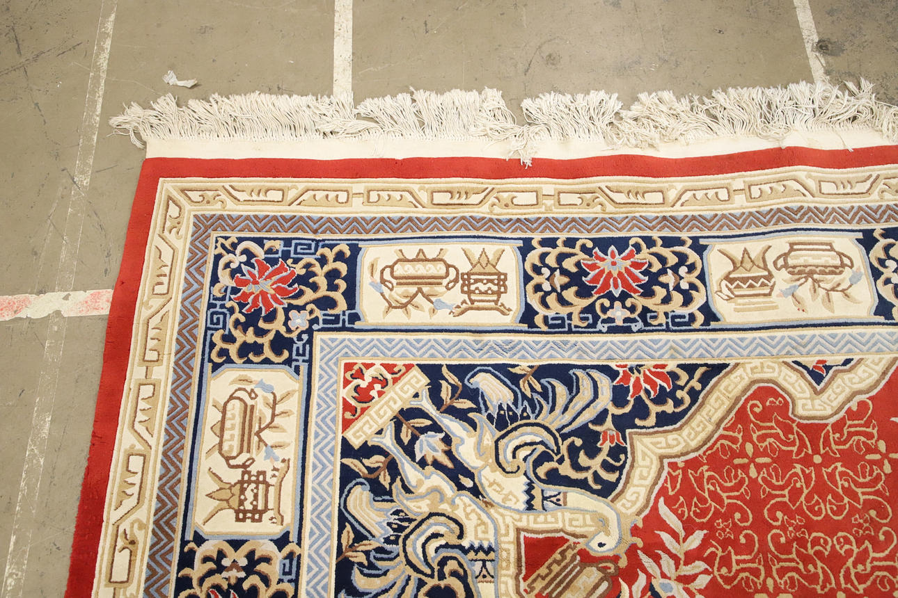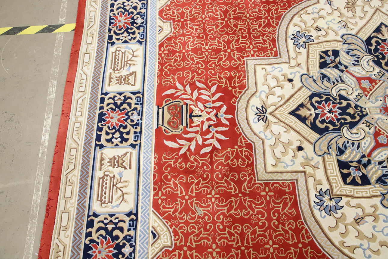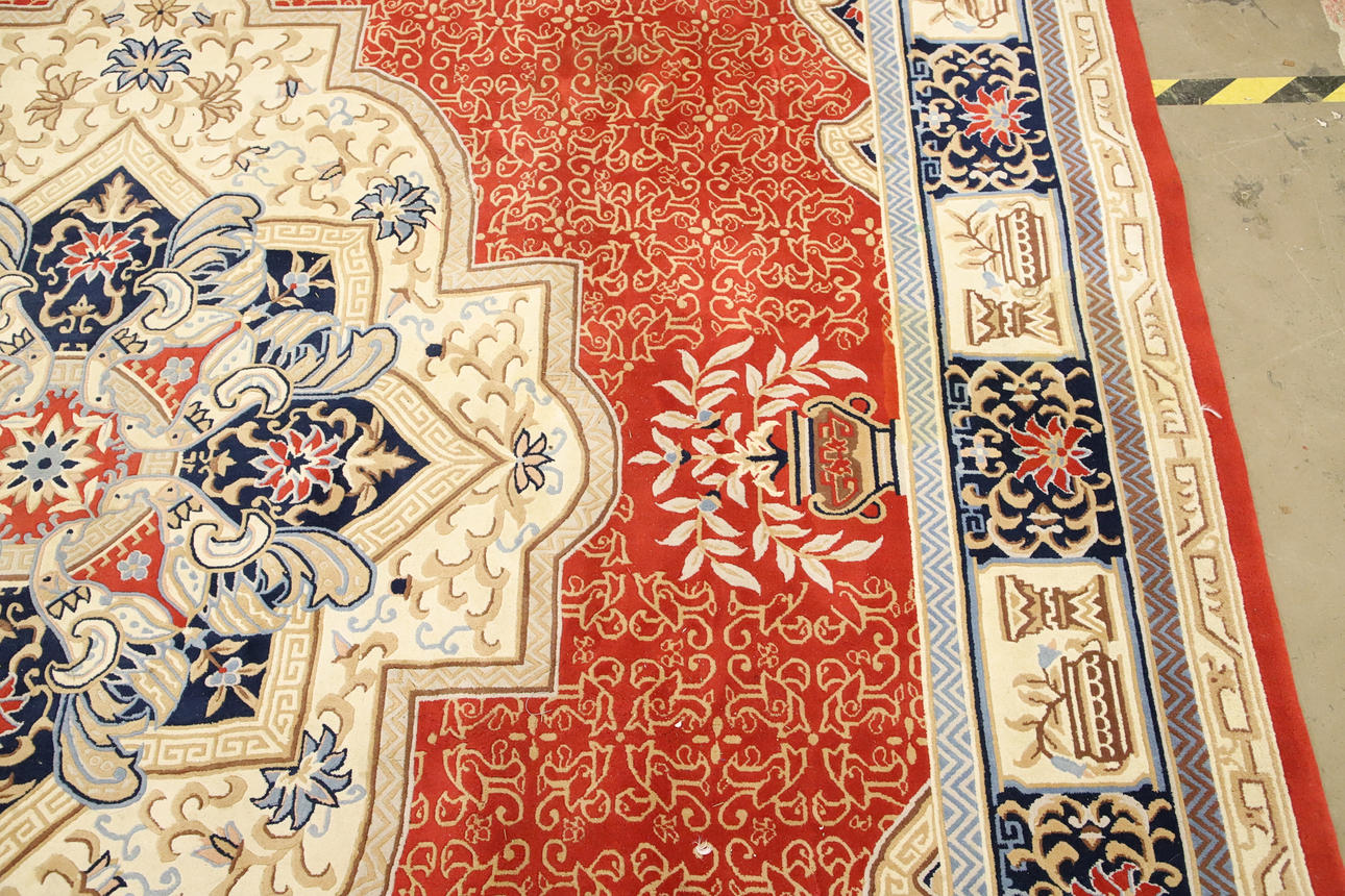 A large modern Chinese medallion carpet, 372cm x 283cm.