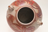 An Aldermaston large two handled jar, painted with leaves in a red and gold lustre. Various painted marks including signature and date code for 1974. 36cms high