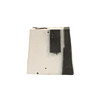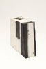 The handbuilt vase with an irregular shaped aperture, tapering sides and block of black and white colour. Signed and dated 92, 20cms high, 20.5cms across at widest point (base).