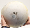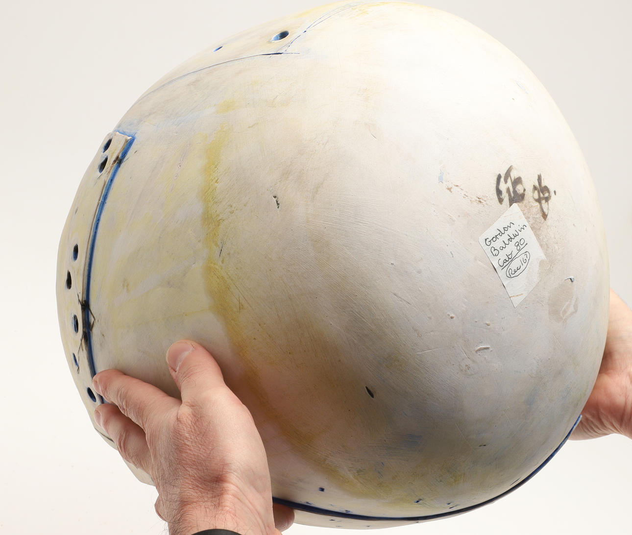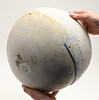 the bowl sounds cracked when tapped around the rim, though I can't see any obvious cracks or damage, remains of a sticker on one side of the body.