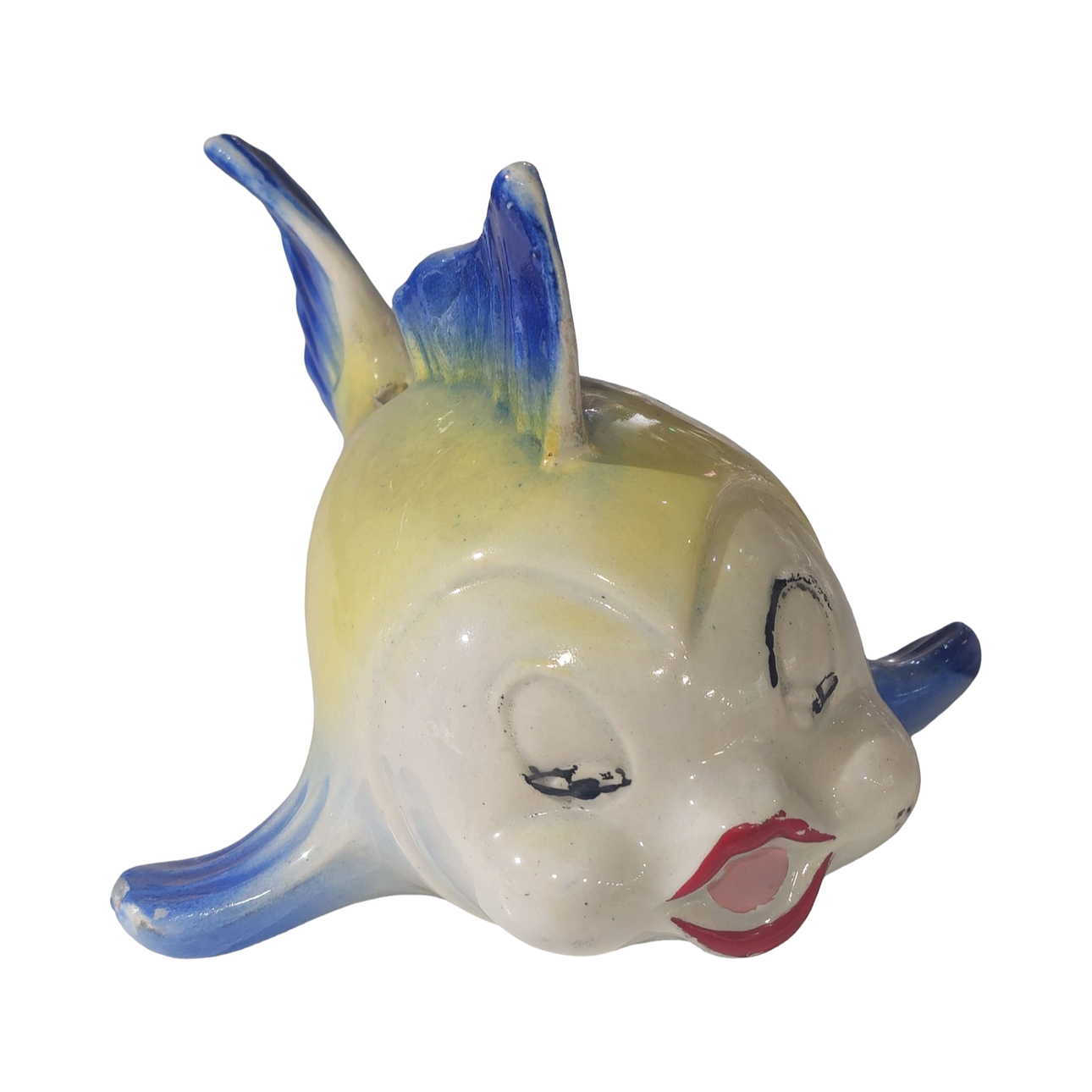 Ceramic fish-shaped piggy bank.