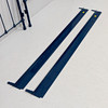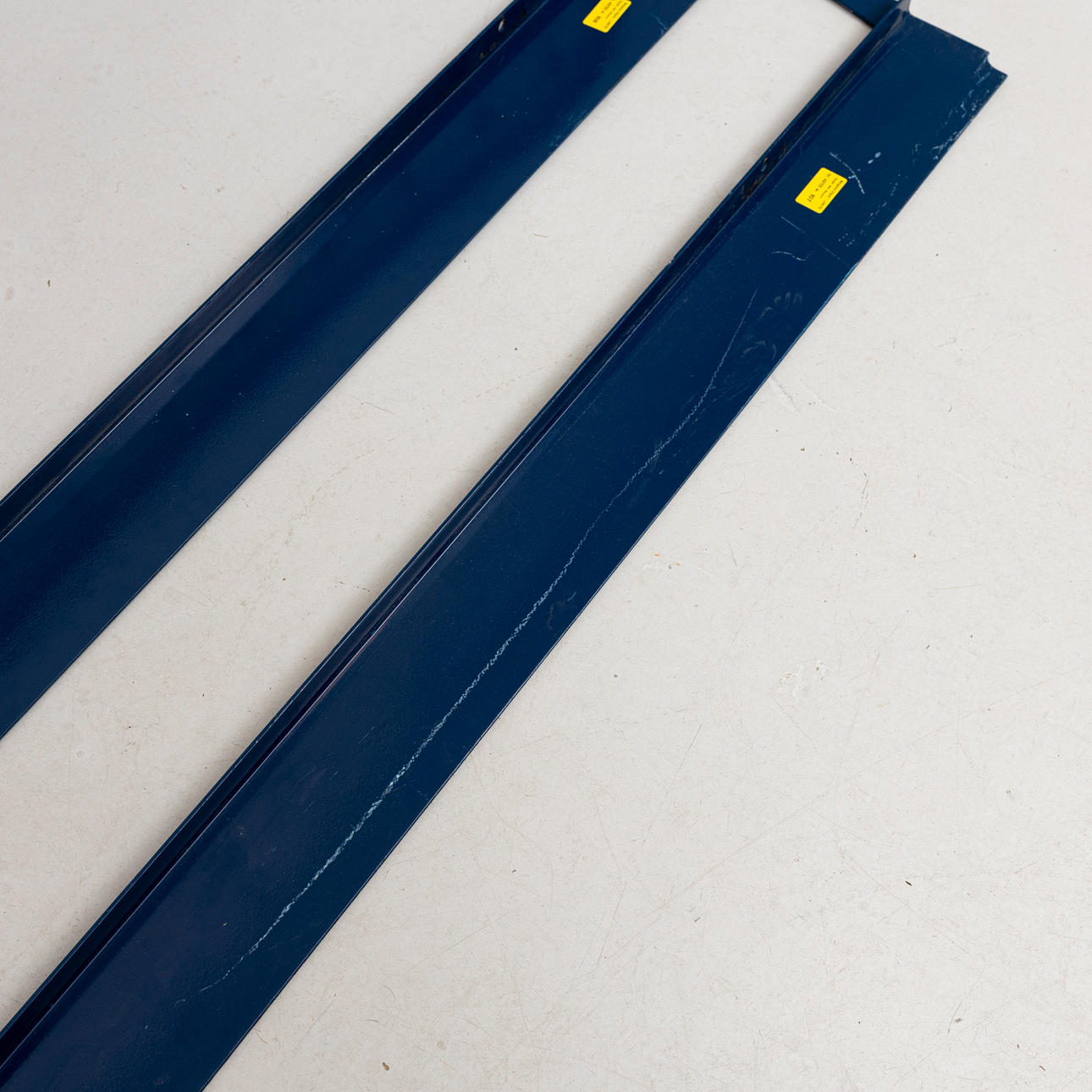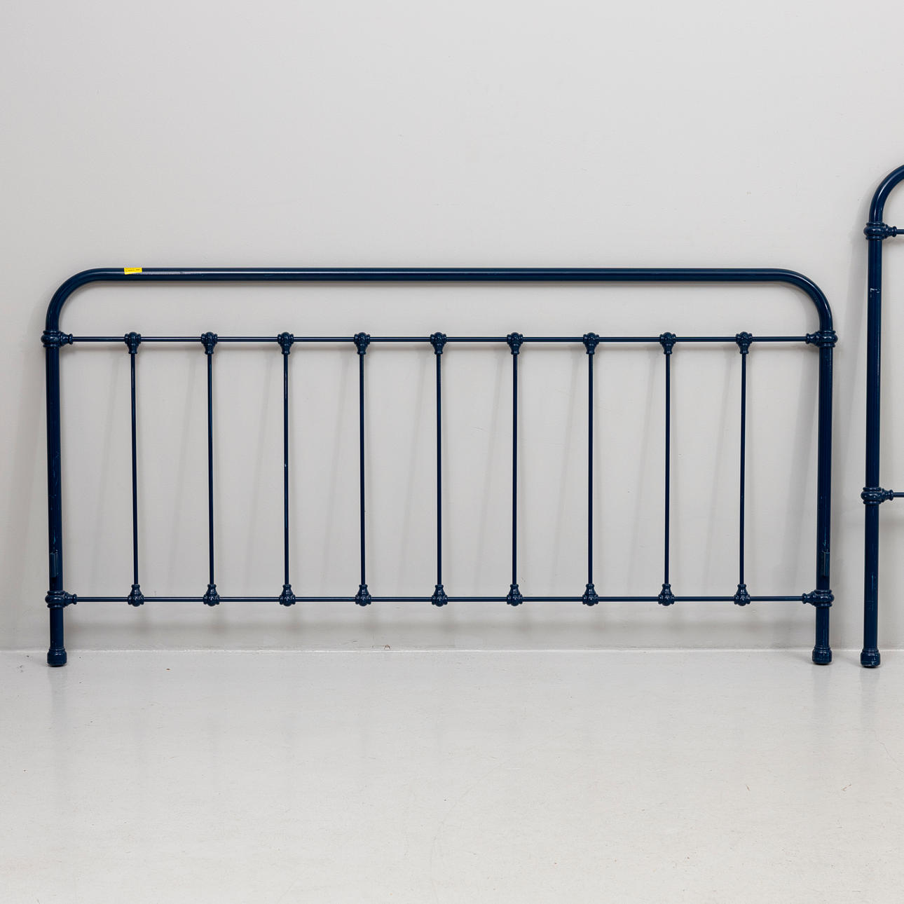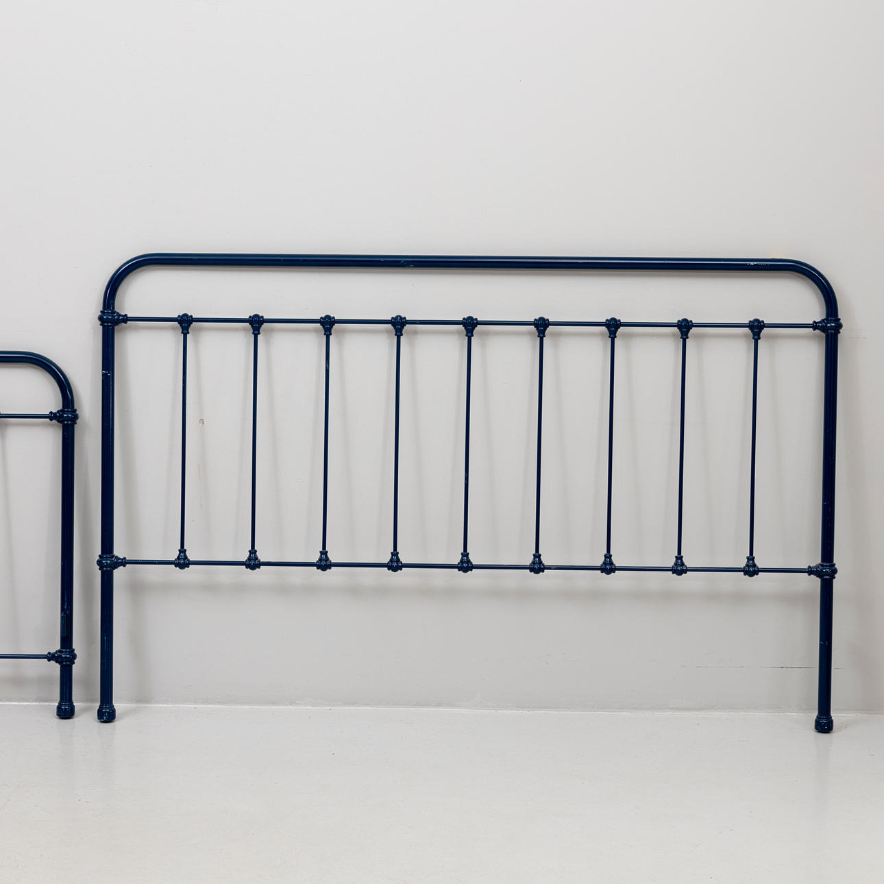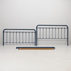 Blue lacquered metal, 2 headboards approx. 185 x 95 and 185 x 120 cm respectively. Total length 210 cm.
