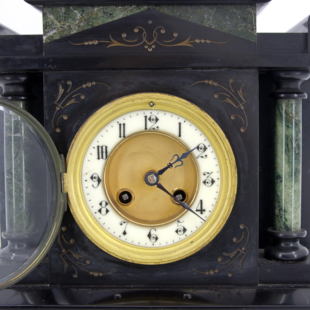 4761316. A stone table clock, marble columns, 20th century.