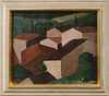 SIXTEN LUNDBOHM. Landscape with rooftops, oil on canvas, signed.
