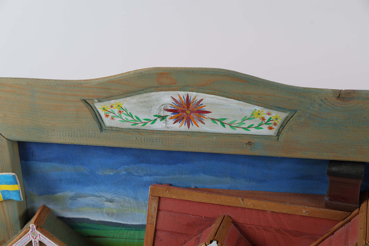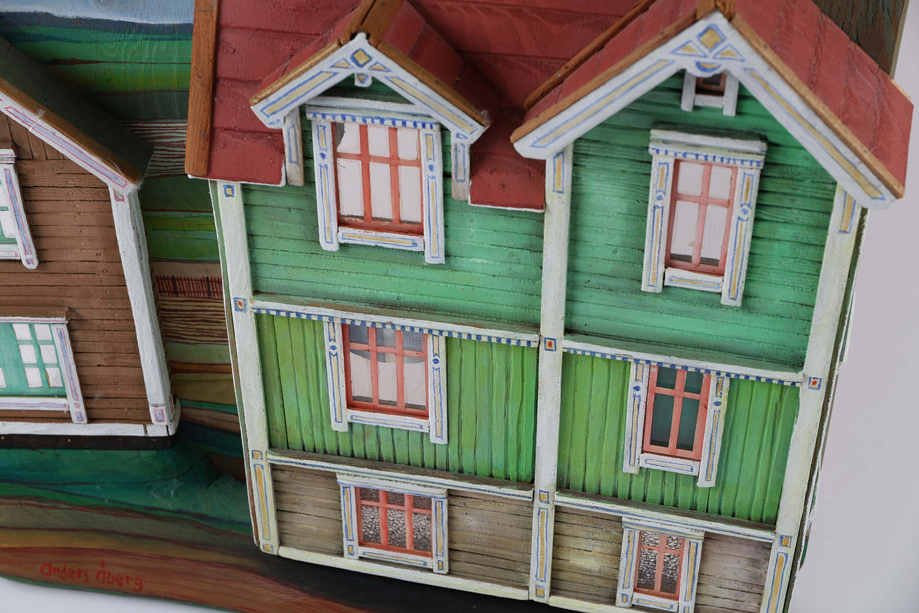 ANDERS ÅBERG. Wall sculpture, house facades, mixed media, signed.