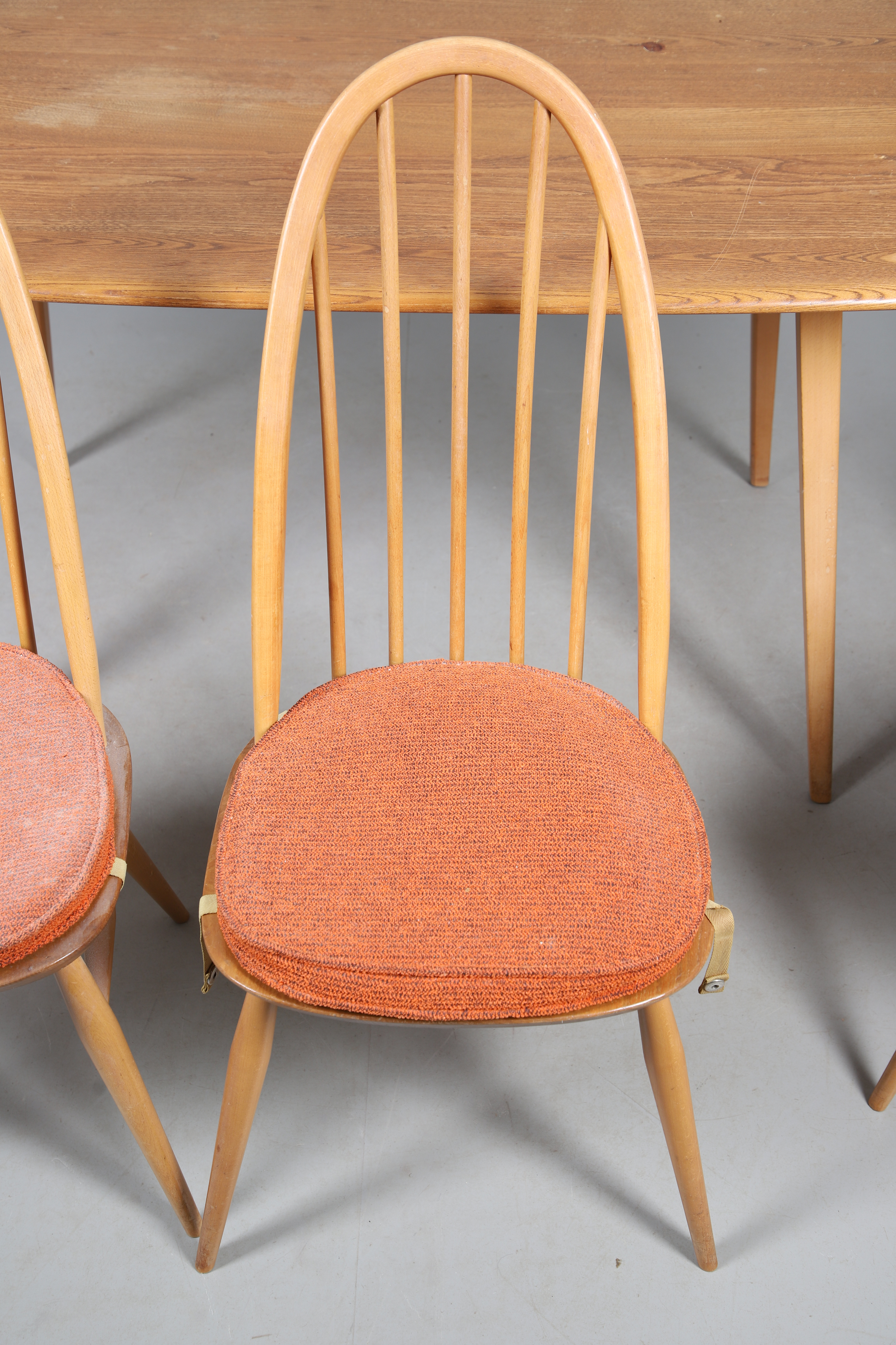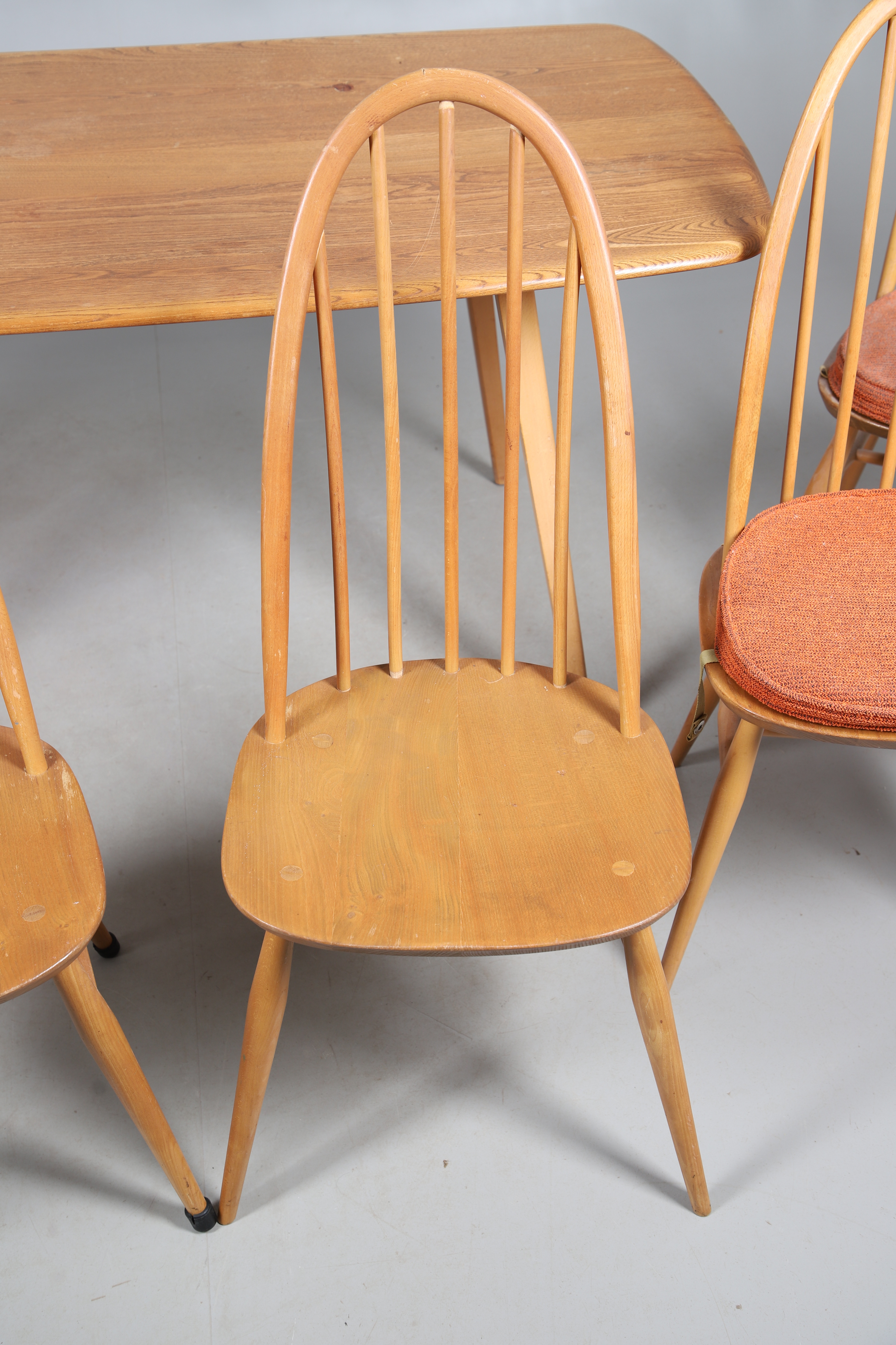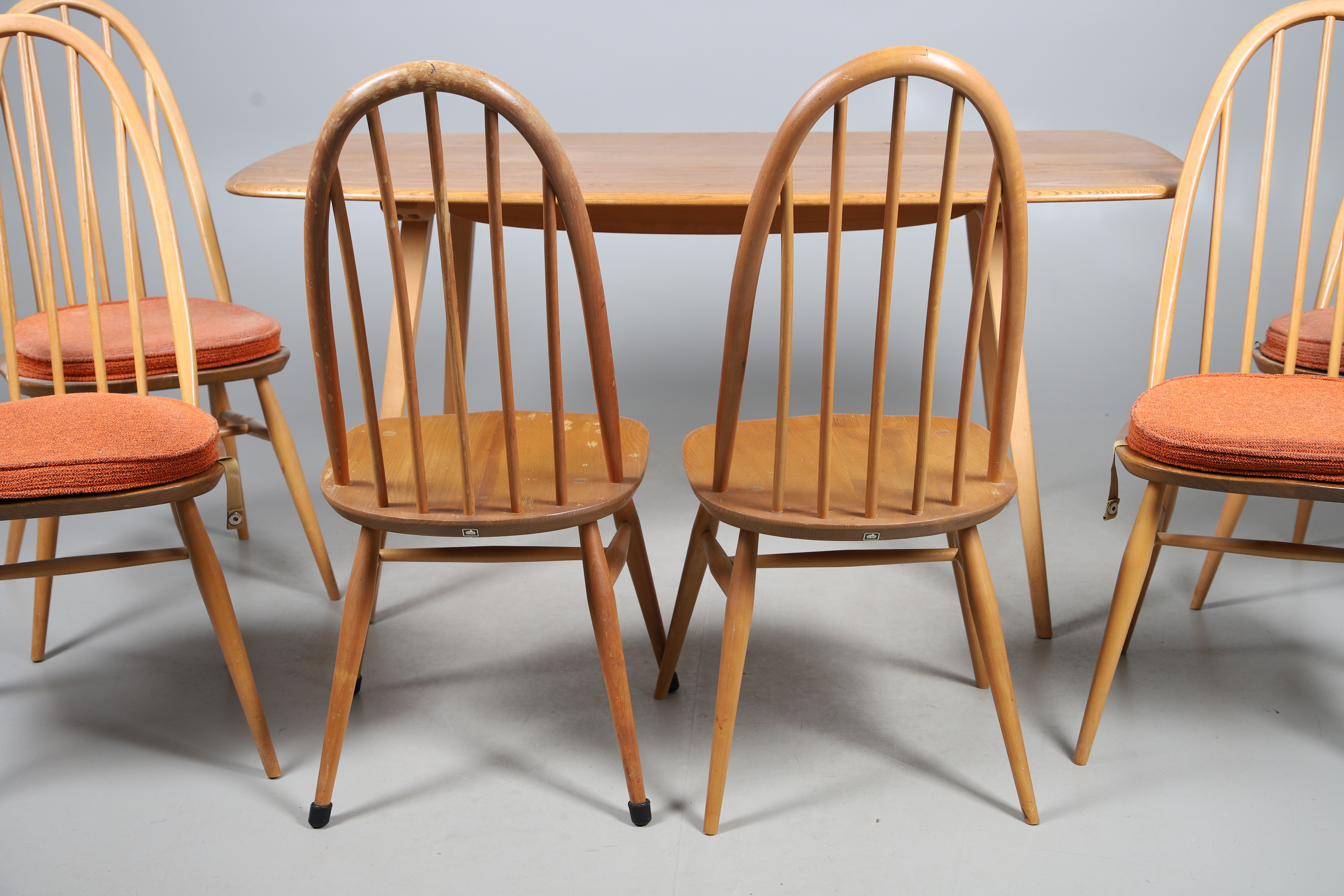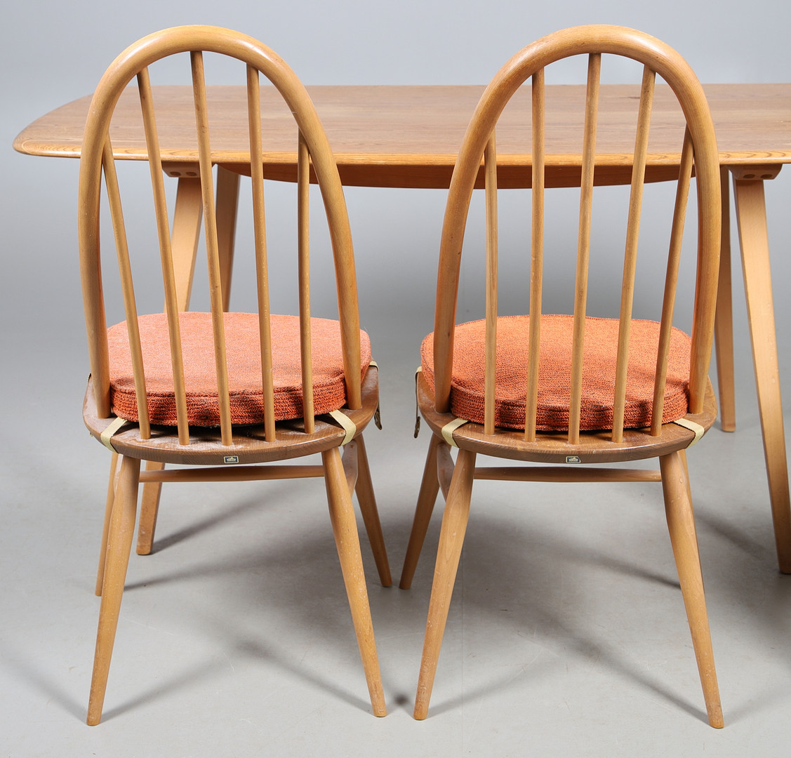 4765790. VINTAGE ERCOL DINING TABLE & SIX CHAIRS.