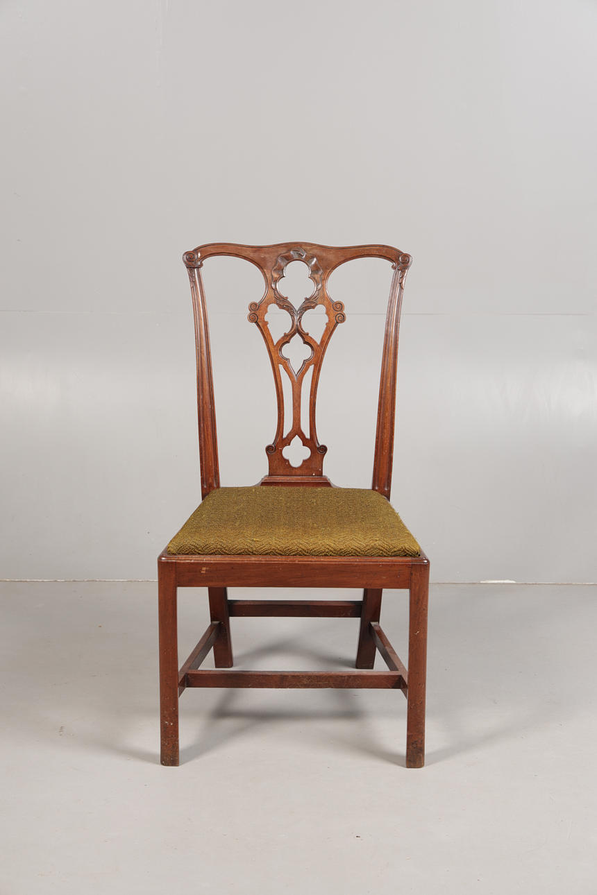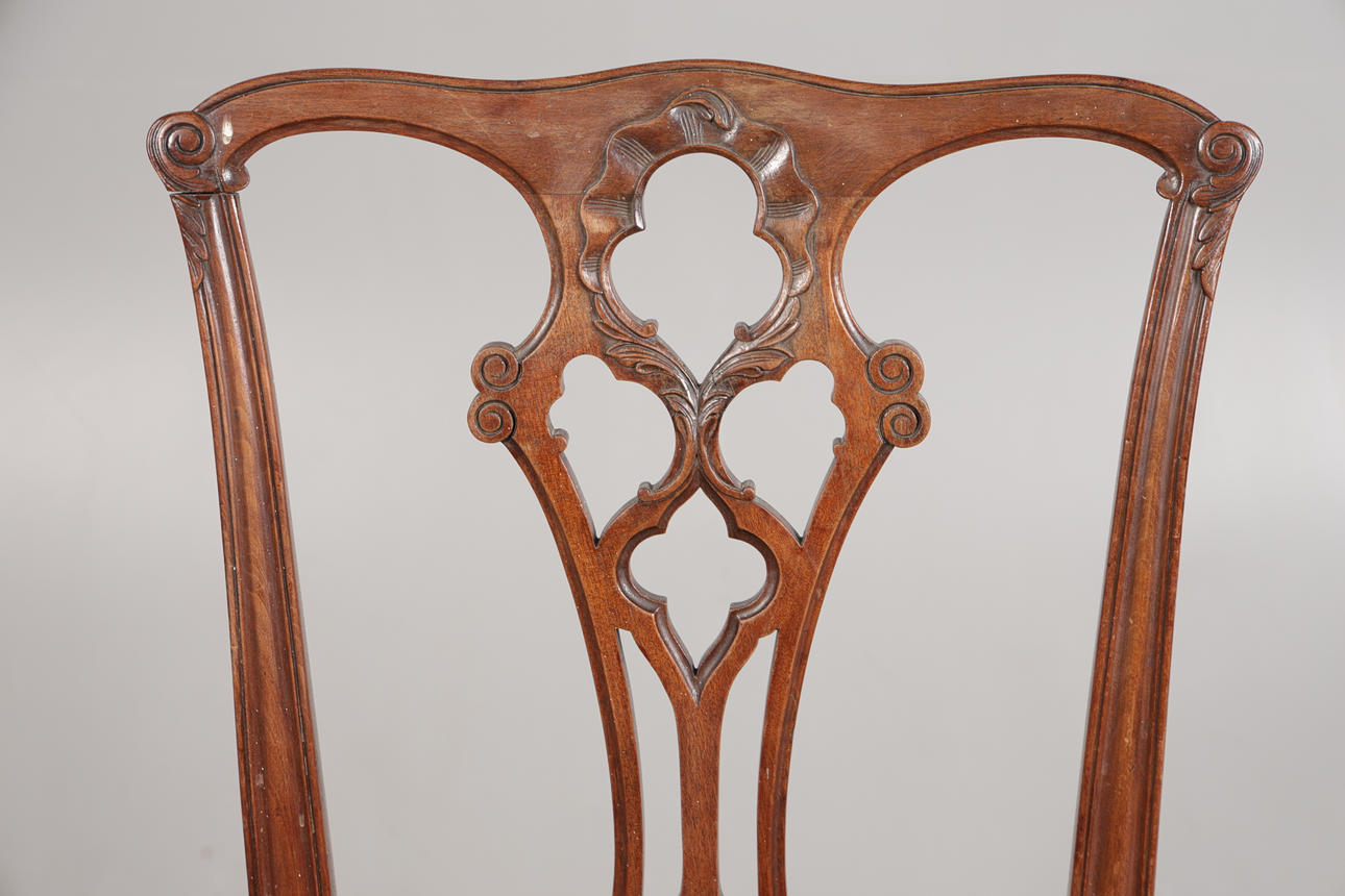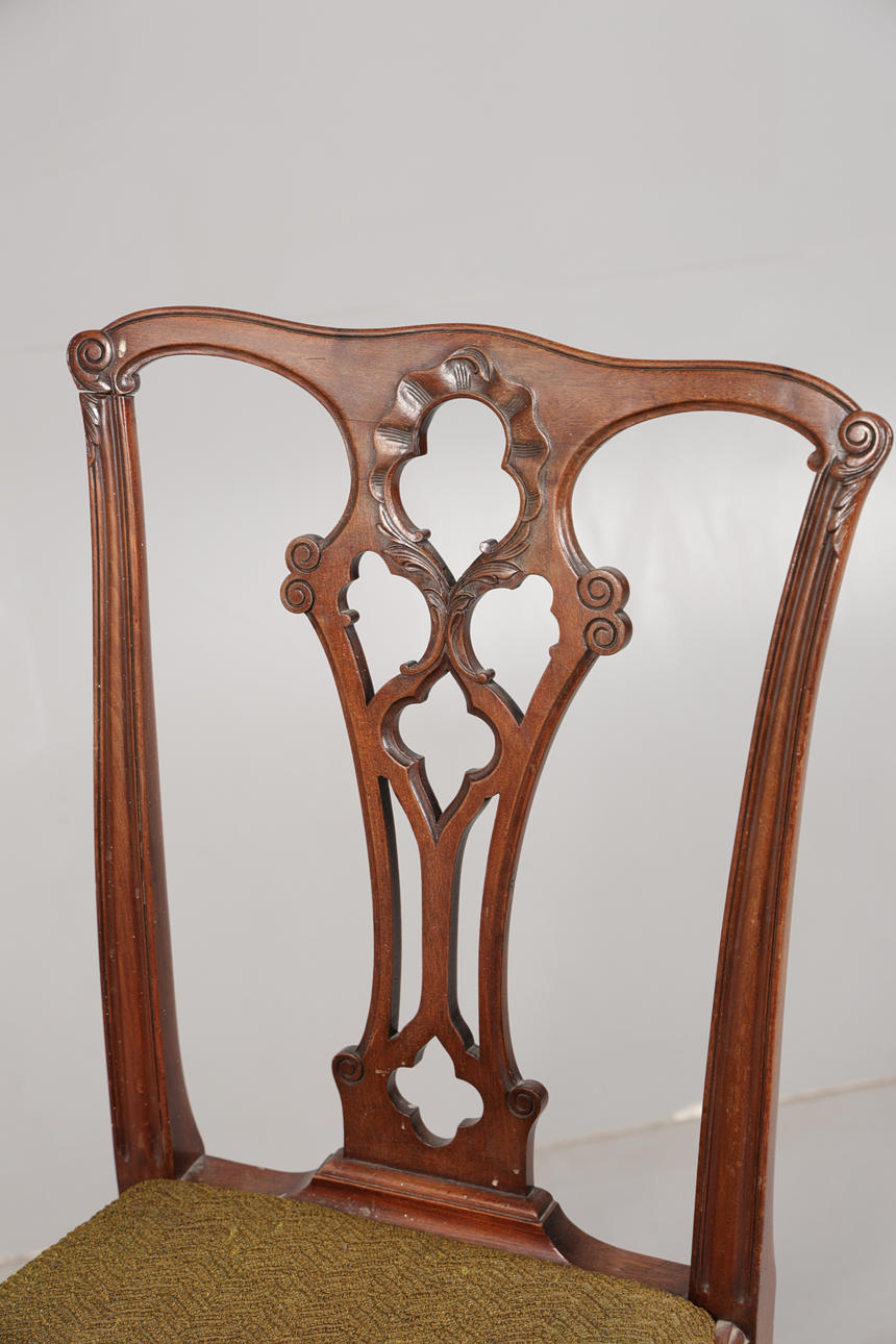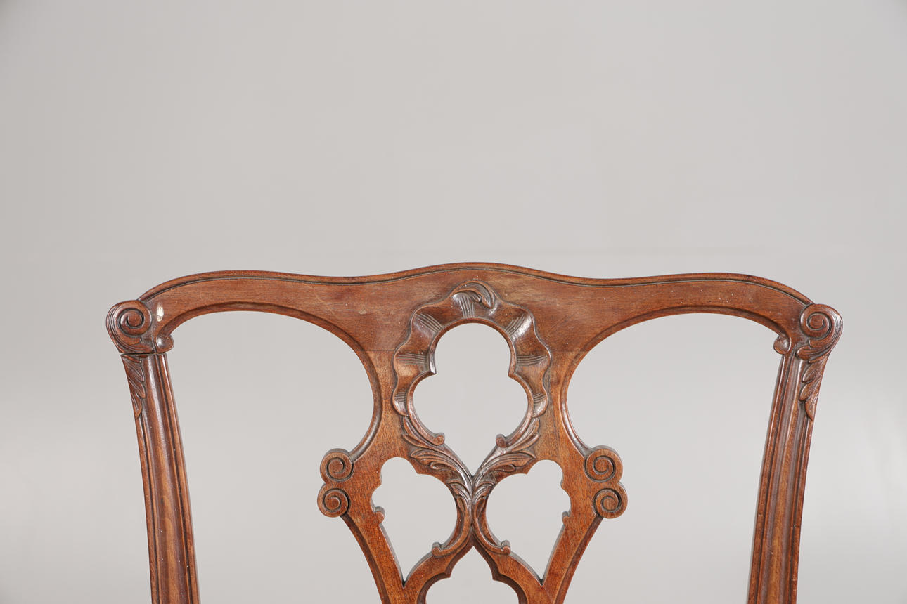 The good quality carved mahogany chair, measuring 98.5cm height, 53.5cm width, 46cm depth.