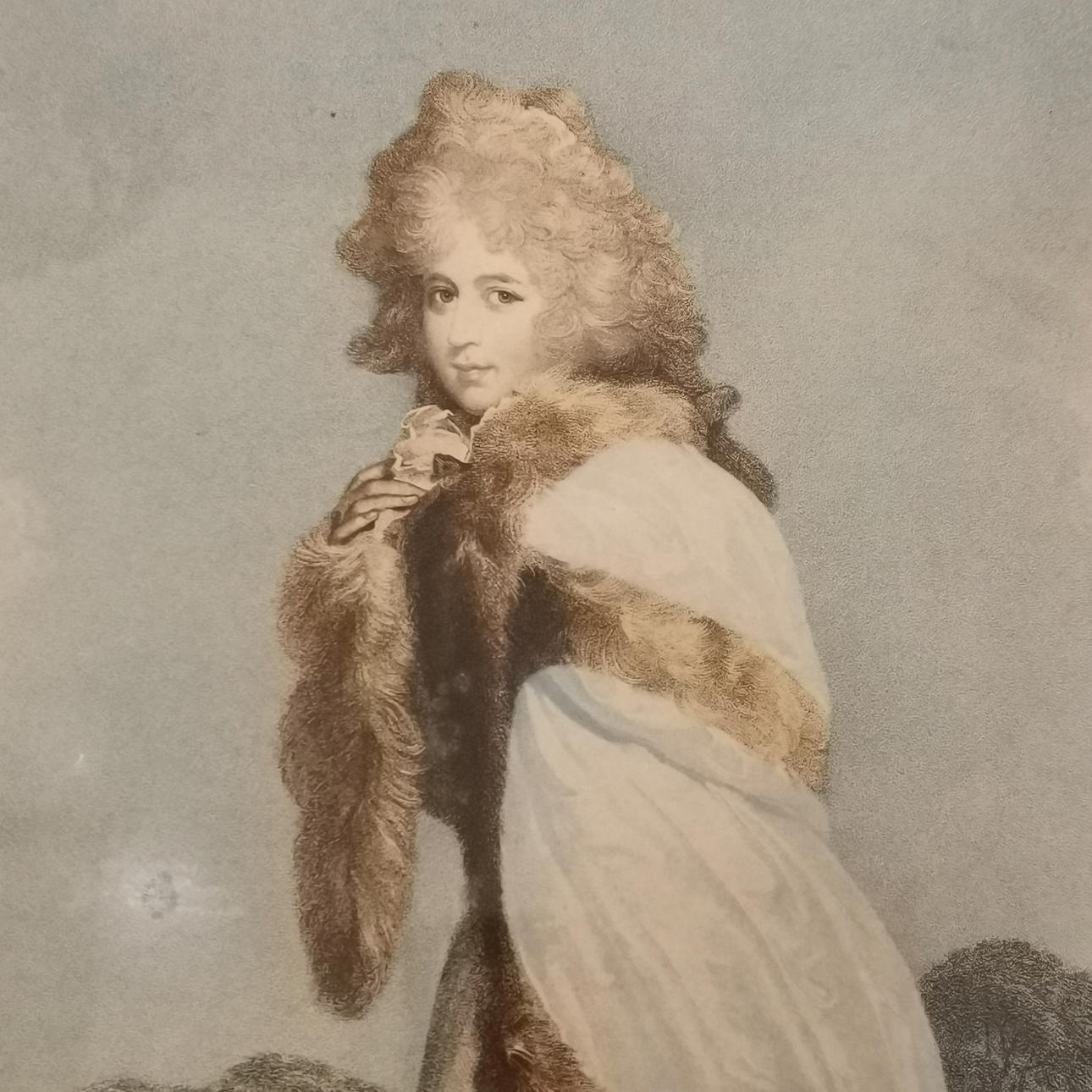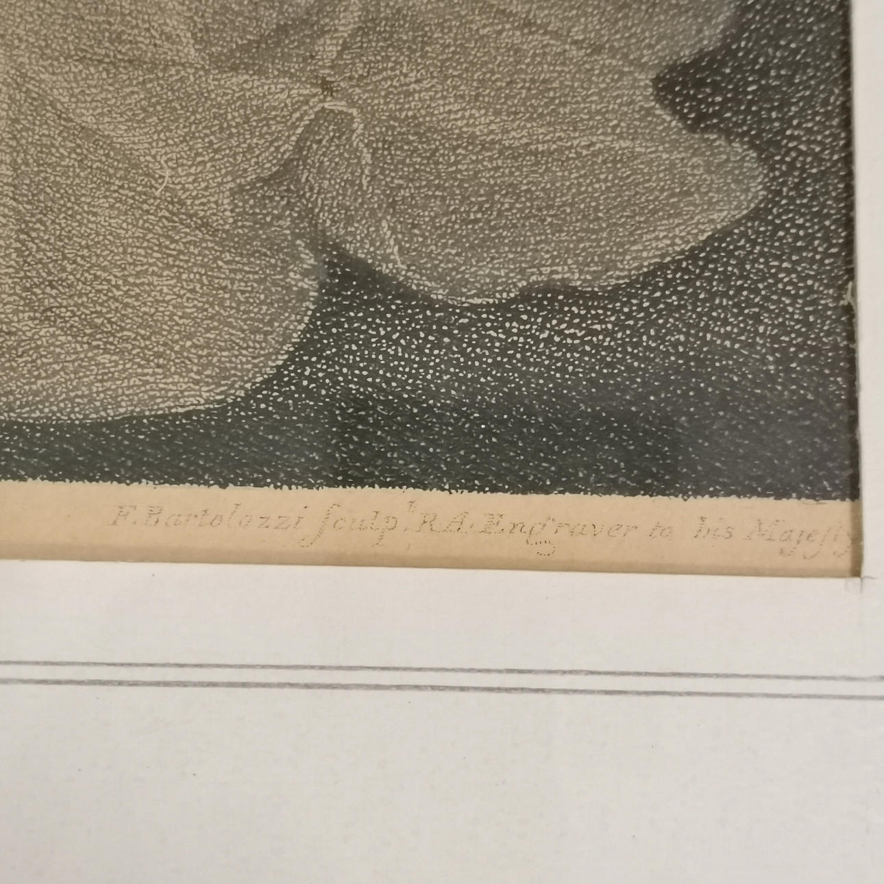 (1792) Francesco Bartolozzi (1728-1815) stipple engraving of Elizabeth Farren (after Thomas Lawrence) - later frame 70cm x 53cm and has some cuttings and 1928 headed letter regarding the subject and the engraving has some surface marks.