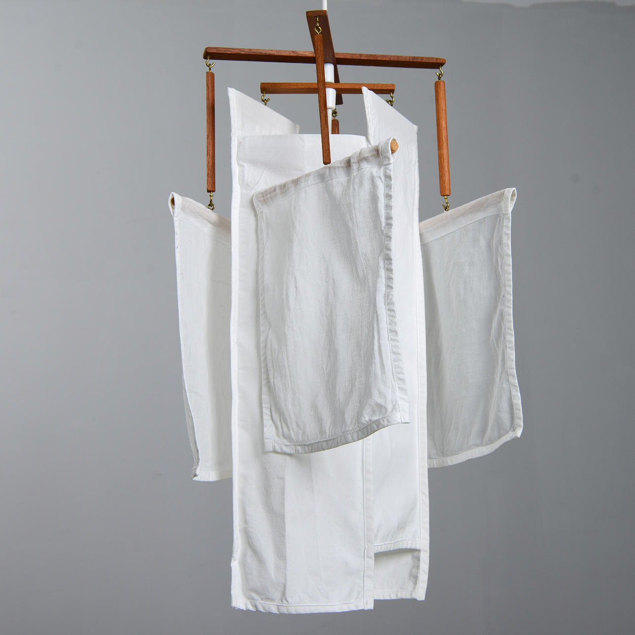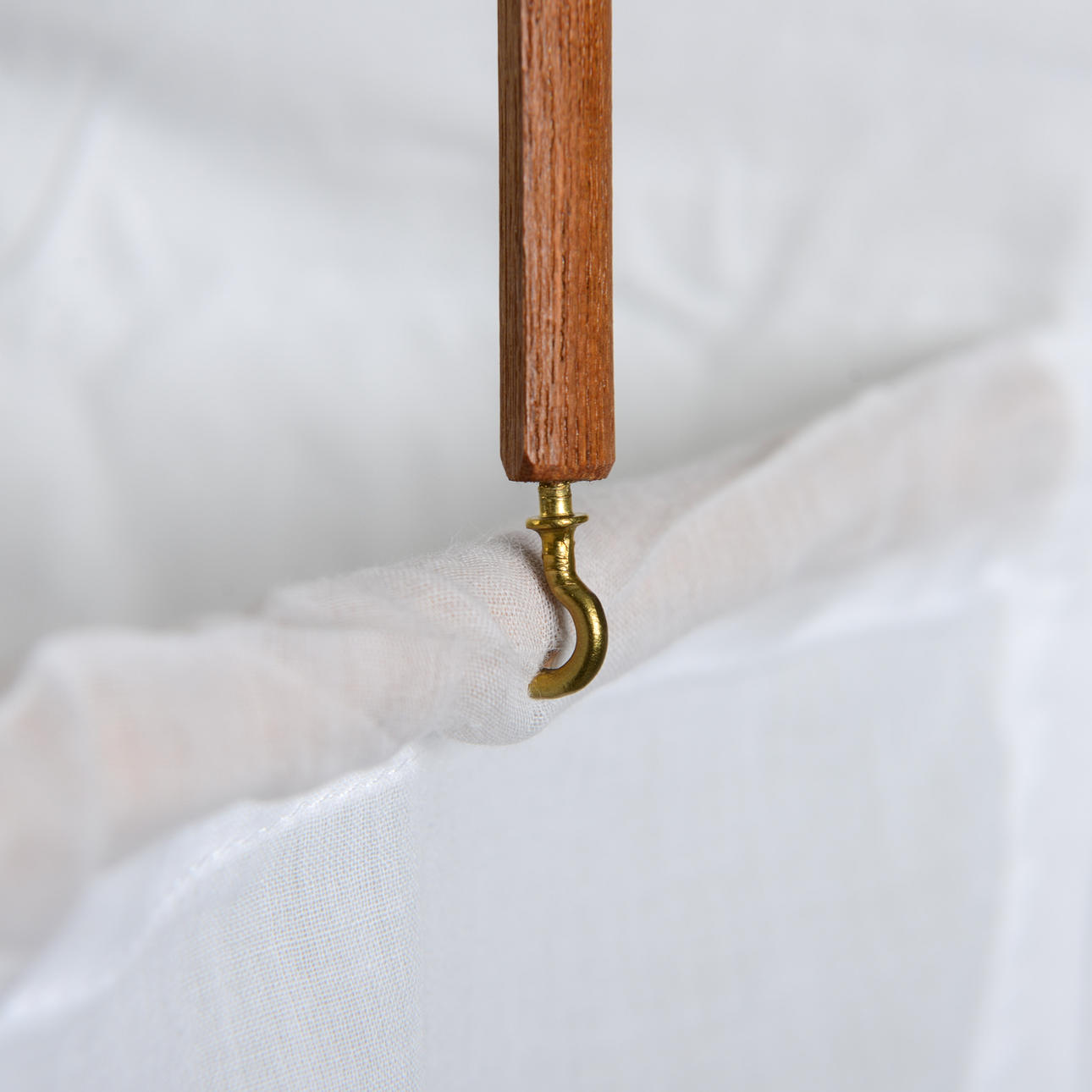 Normal wear and tear, minor stains and surface dirt on textiles. A small hook is missing for hanging textile.