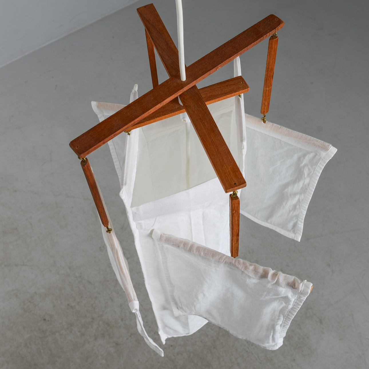 Linen and walnut. Branded. Height excluding cord 55 cm.